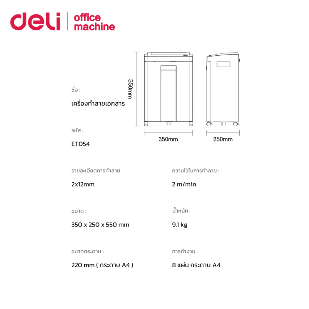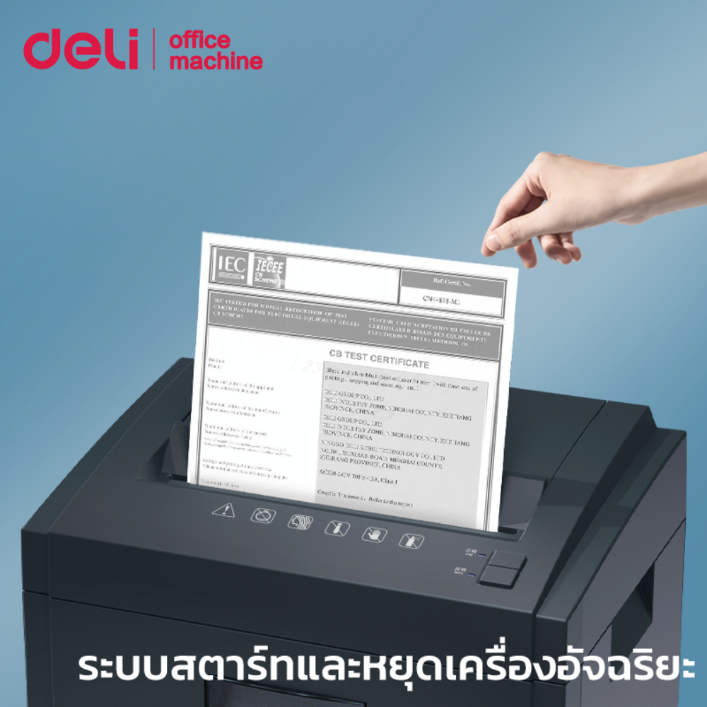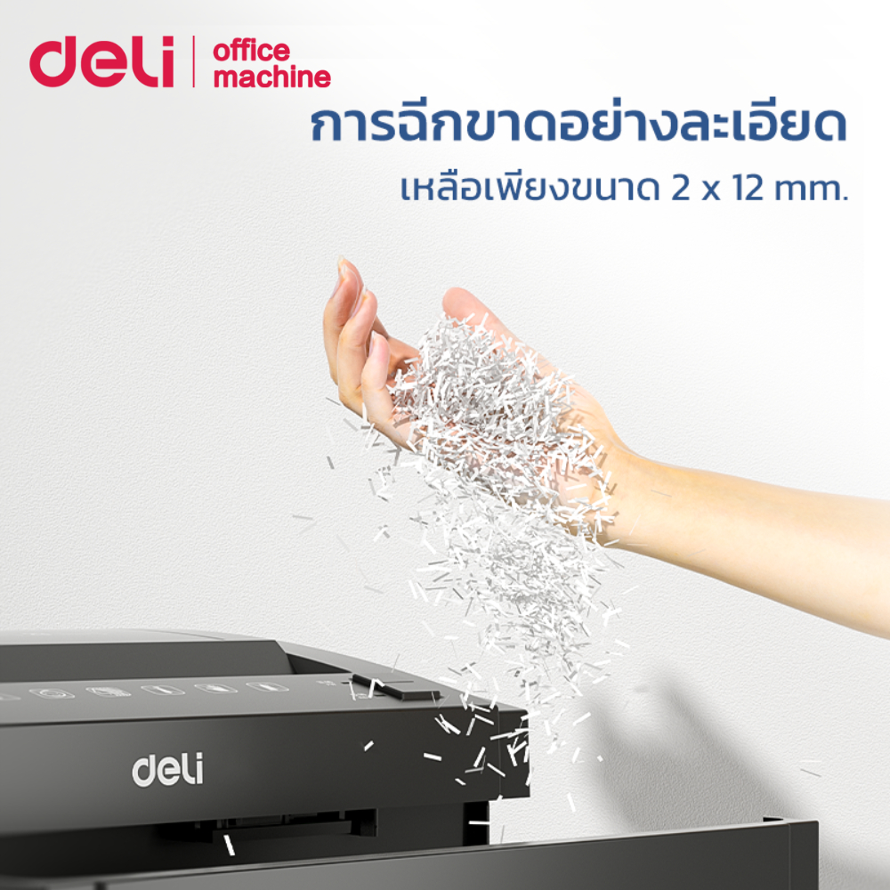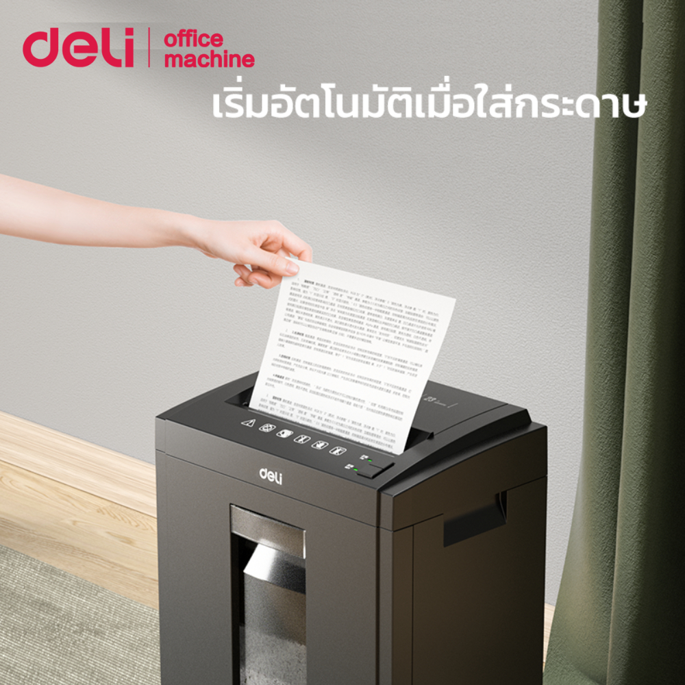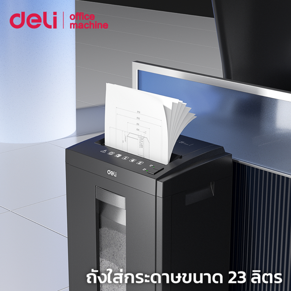 Deli เครื่องย่อยเอกสาร เครื่องทำลาย CD/บัตร/A4 23L Auto ย่อยละเอียด 2x12มม เสียงเบา Paper shredder