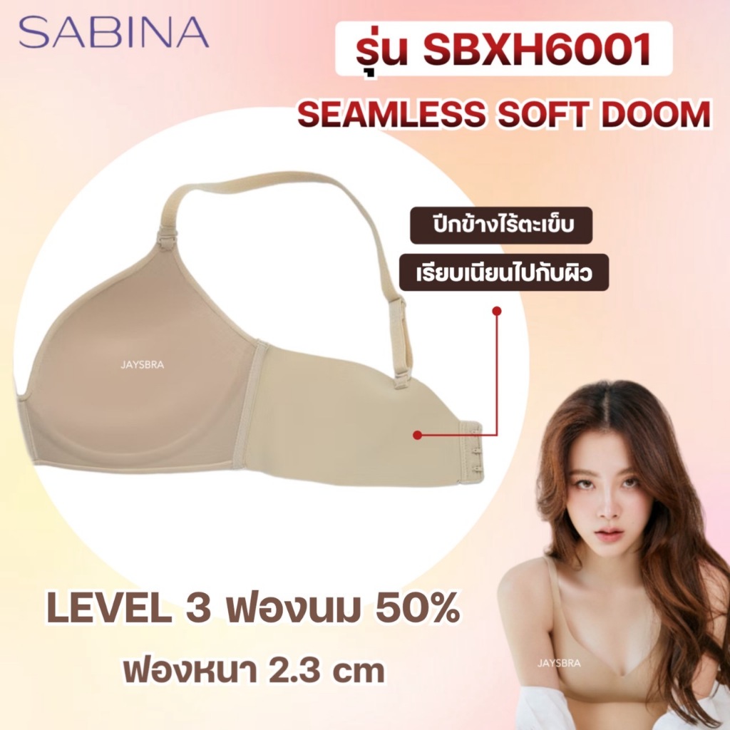 ✅ฟองนม 50% SABINA เสื้อชั้นใน ไม่มีโครง Invisible wire ดันทรงปานกลาง SOFT DOOM 6001