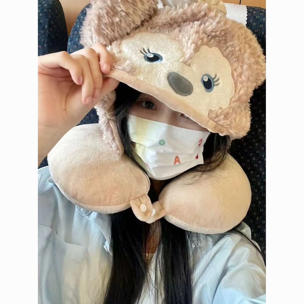 หมอนรองคอพร้อมฮู้ด รูปทรงU ลายการ์ตูนลายเปียโน สติตช์หมอนที่นุ่มนิ่ม ความสบายตลอดการเดินทาง ลายน่ารัก งีบหลับ ในรถยนต์และเครื่องบิน ✨Swoan60.th✨