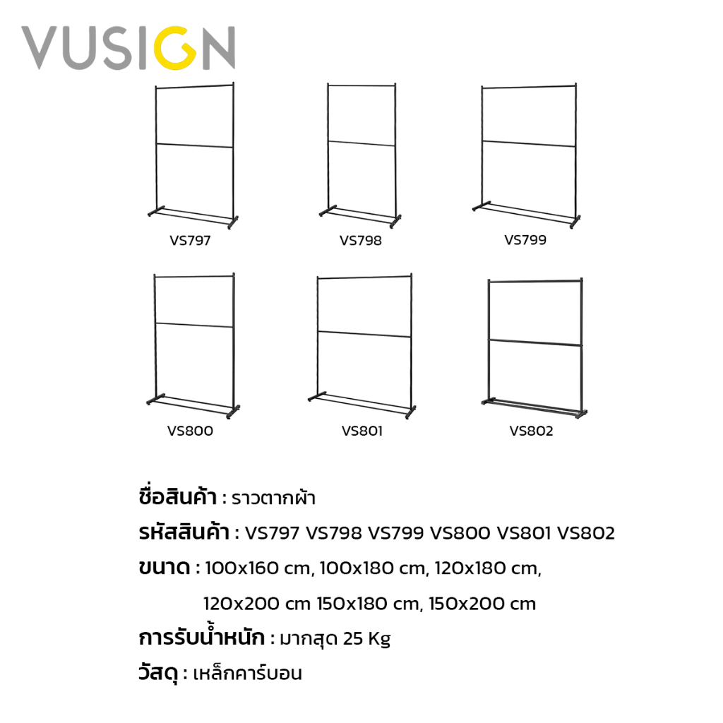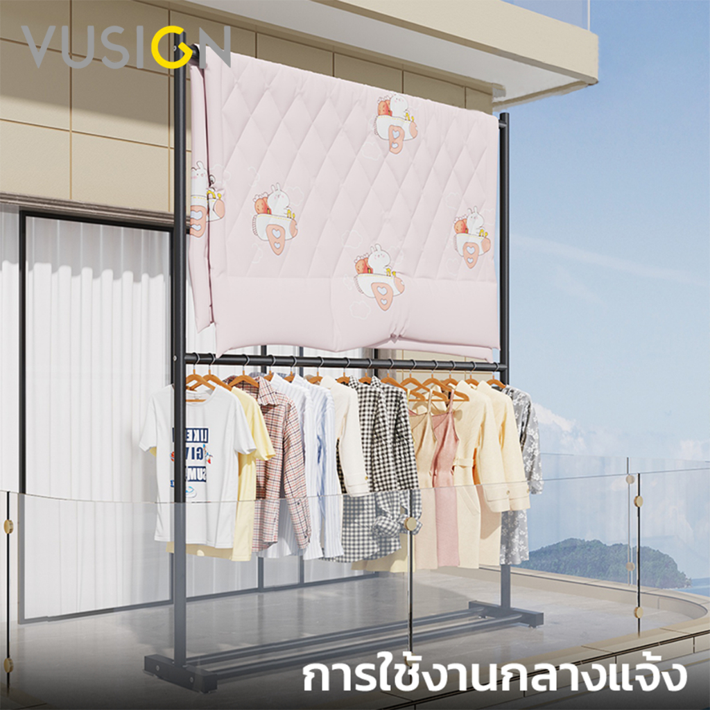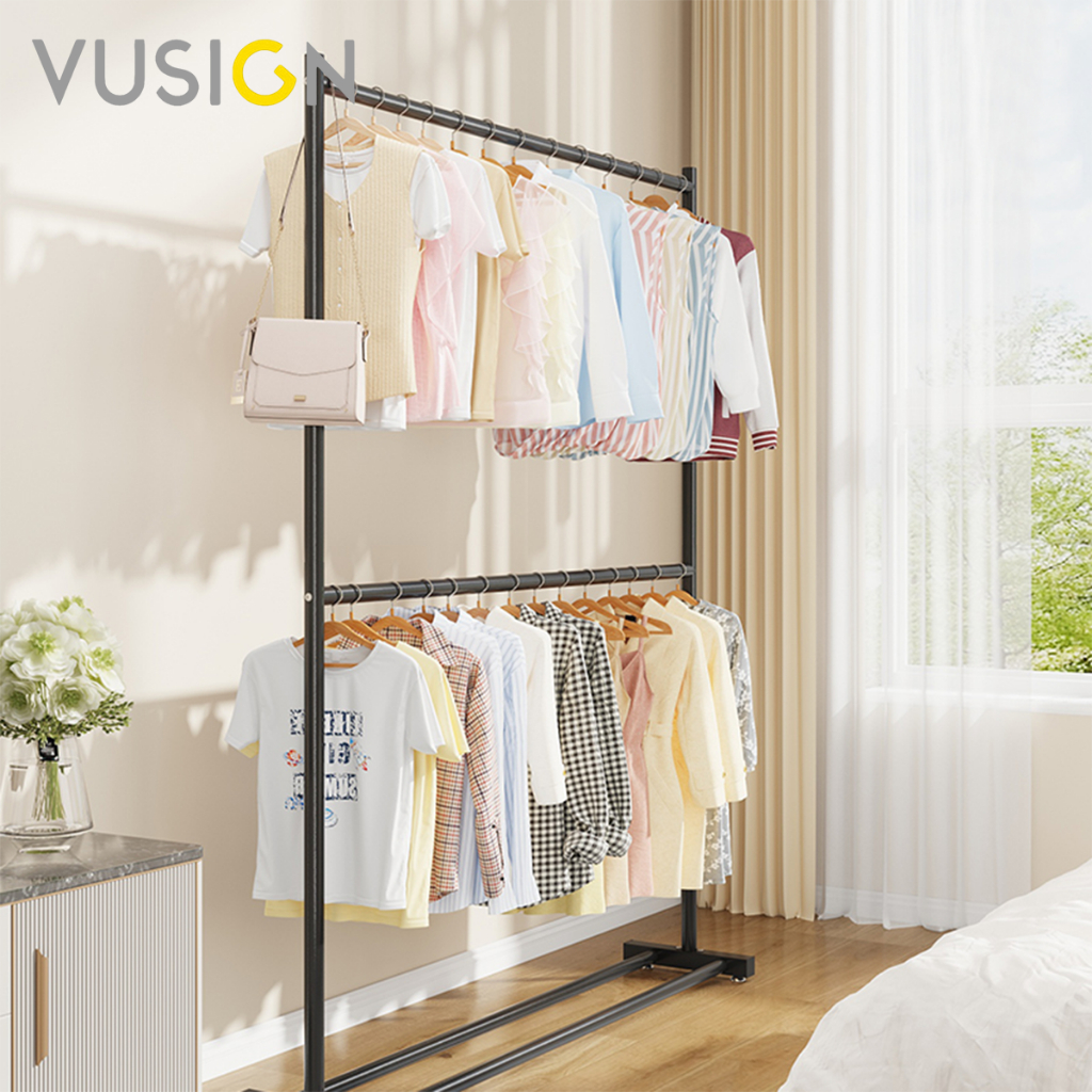 [ของขวัญฟรี] Vusign ราวเหล็กแขวนผ้า 2ชั้น ราวแขวนเสื้อผ้า รับน้ำหนักได้ 25Kg แขวนเสื้อผ้าได้เยอะ Clothing Rack