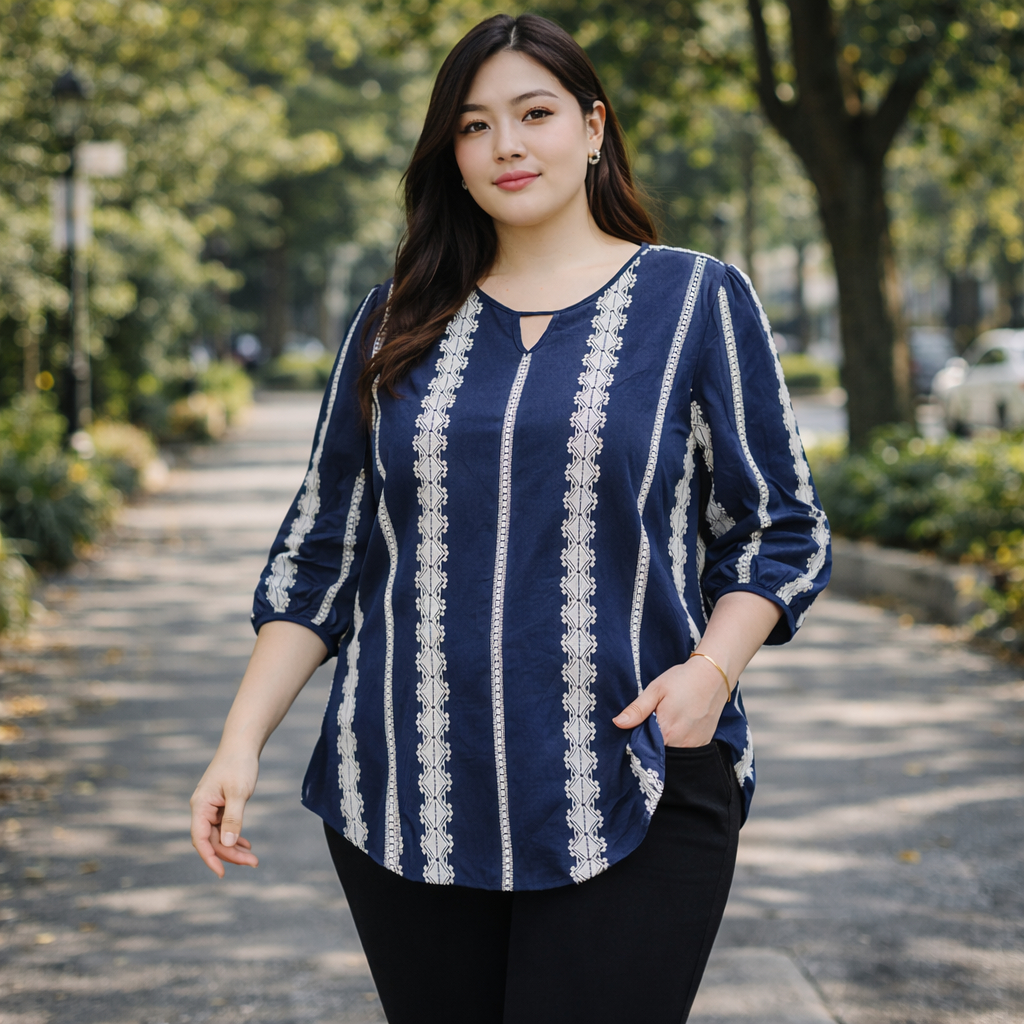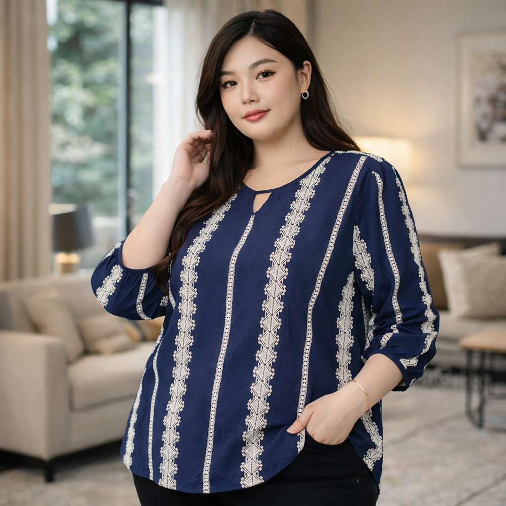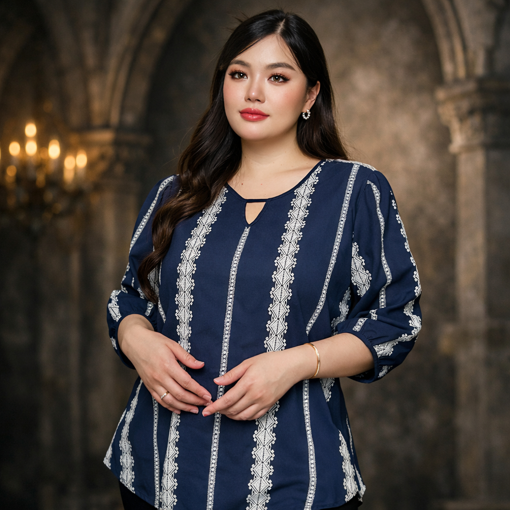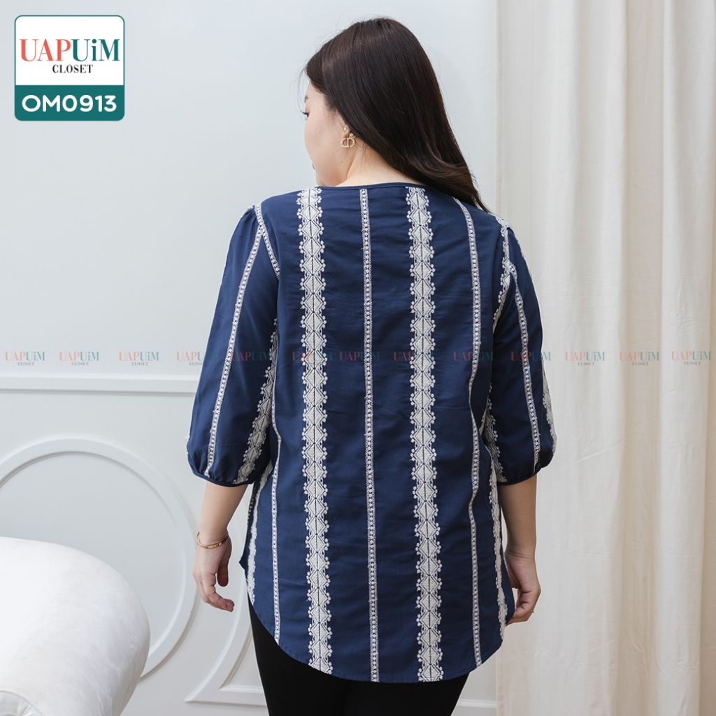 (OM0913)เสื้อแขนสั้นสาวอวบเสื้อแขนสั้นสีกรมท่า มาพร้อมกับดีไซน์ที่เรียบง่าย แต่แฝงไปด้วยคลาสสิก