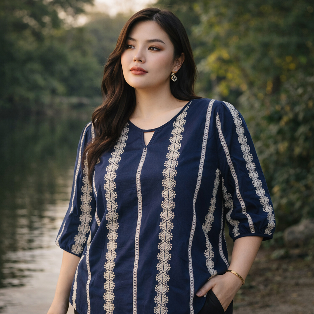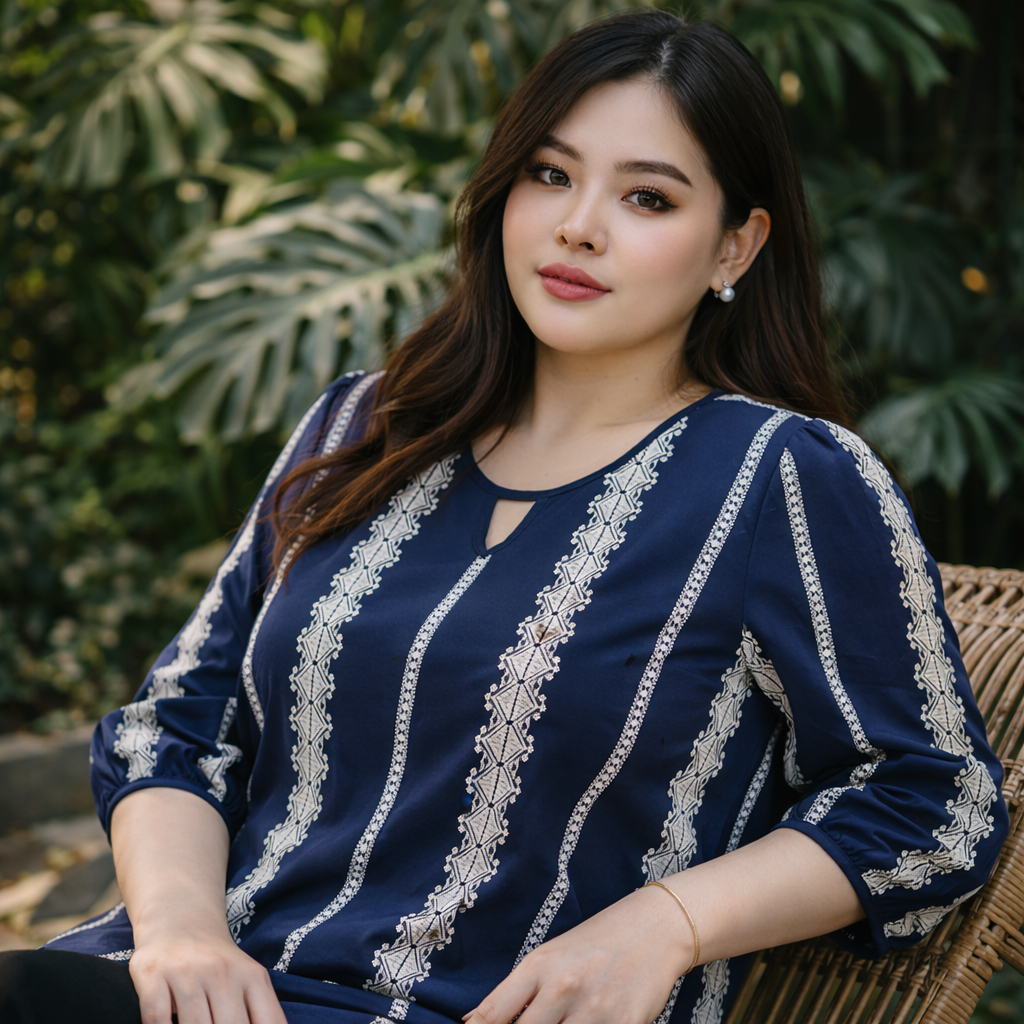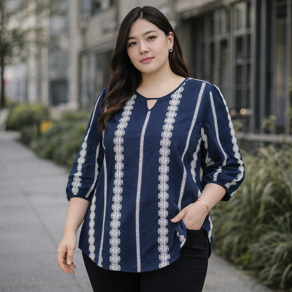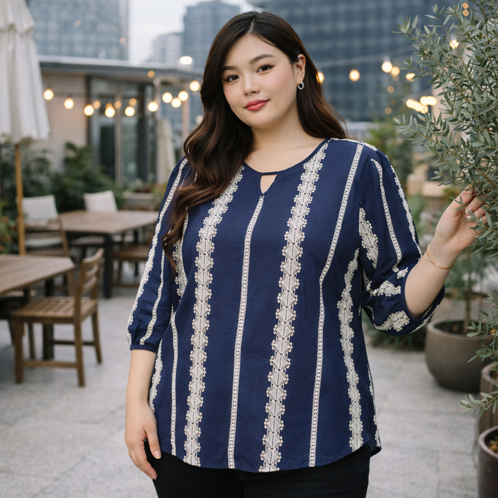 (OM0913)เสื้อแขนสั้นสาวอวบเสื้อแขนสั้นสีกรมท่า มาพร้อมกับดีไซน์ที่เรียบง่าย แต่แฝงไปด้วยคลาสสิก