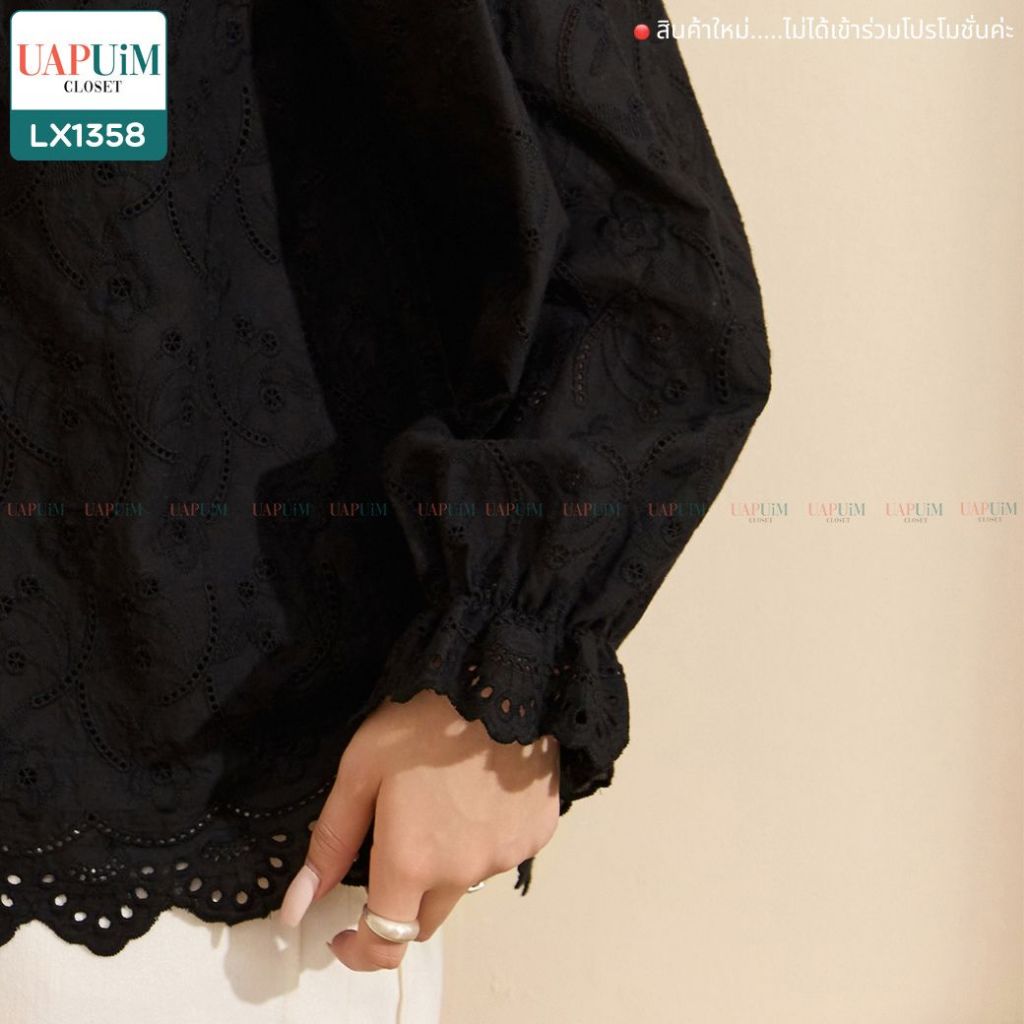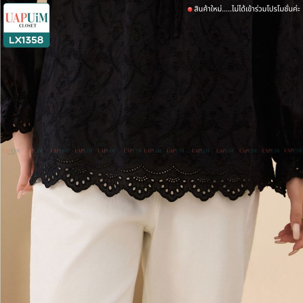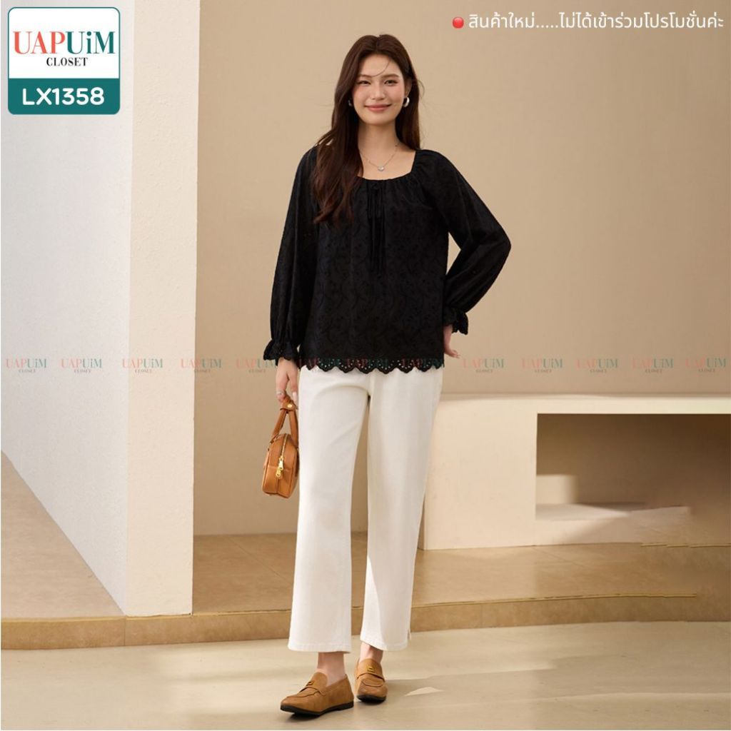 (LX1358)เสื้อแขนยาวสาวอวบเสื้อแขนยาวคอกลม ดีเทลปลายแขนยางยืดแต่งระบายเล็กน่ารัก