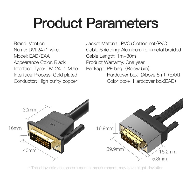 vention dvi to dvi dual link สายเคเบิ้ล dvi - d 24+1 male to male สําหรับโปรเจคเตอร์เครื่องคอมพิวเตอร์ (2560x1600) EAA