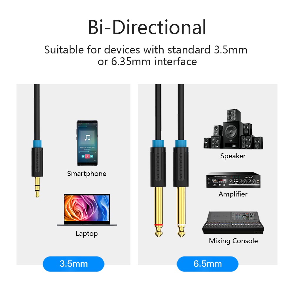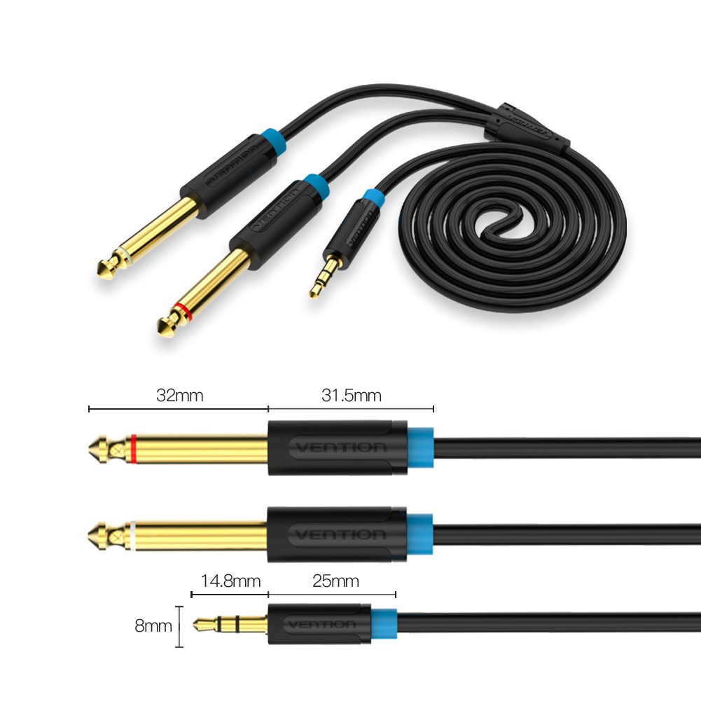 Vention อะแดปเตอร์แจ็กสเตอริโอ TRS 3.5 มม. 1/8 นิ้ว เป็น TS Mono 6.35 มม. 1/4 นิ้ว แยกเส้น ทรงตัว Y สำห BAC