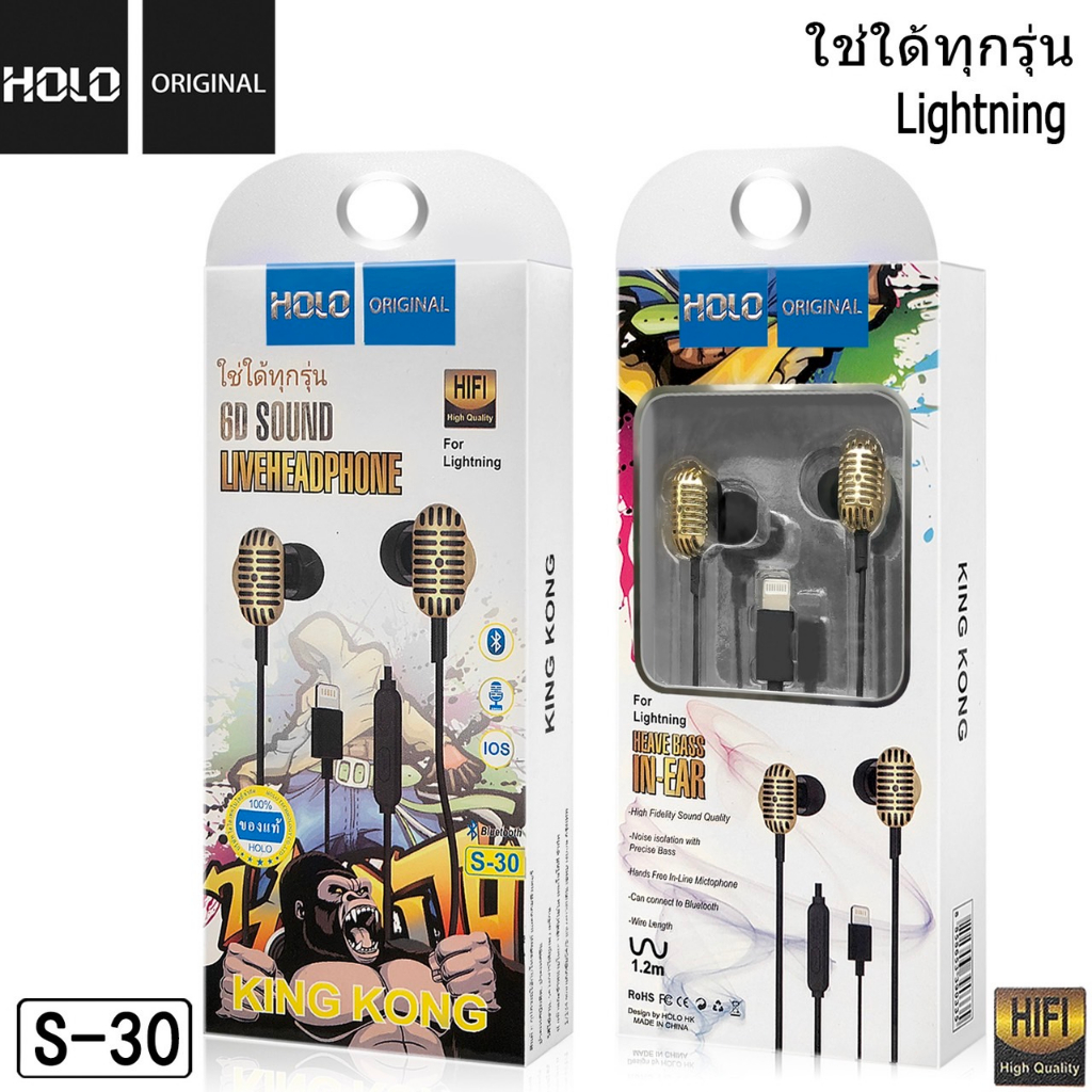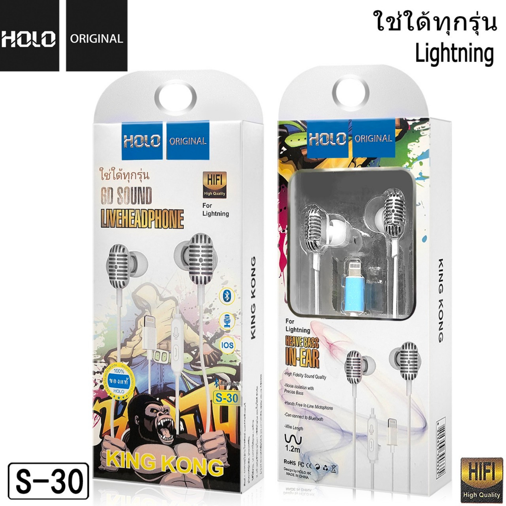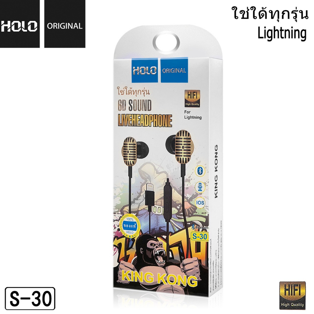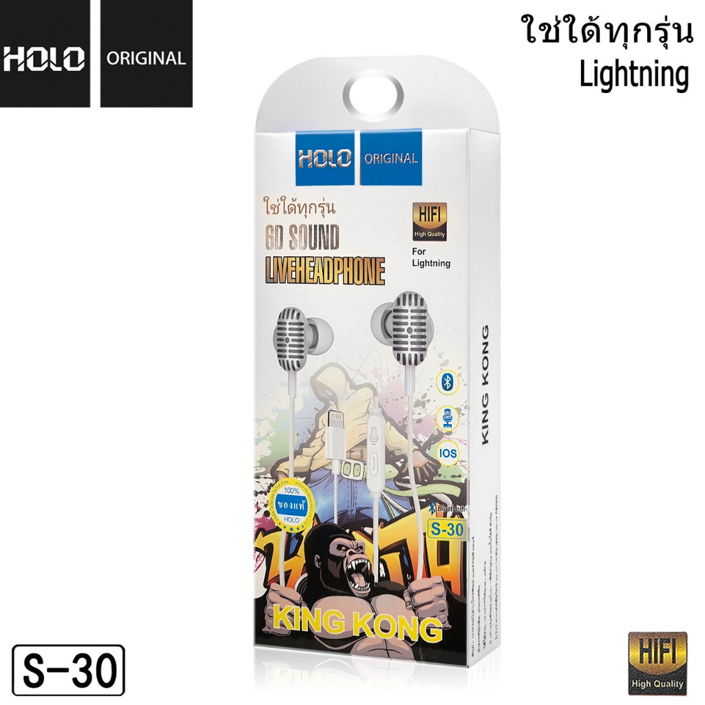 HOLO S-30 หูฟังของแท้ หูฟัง IOS หูฟังมีไมค์ในตัว หูฟังโทรศัพท์สำหรับ IOS