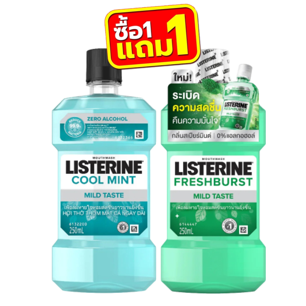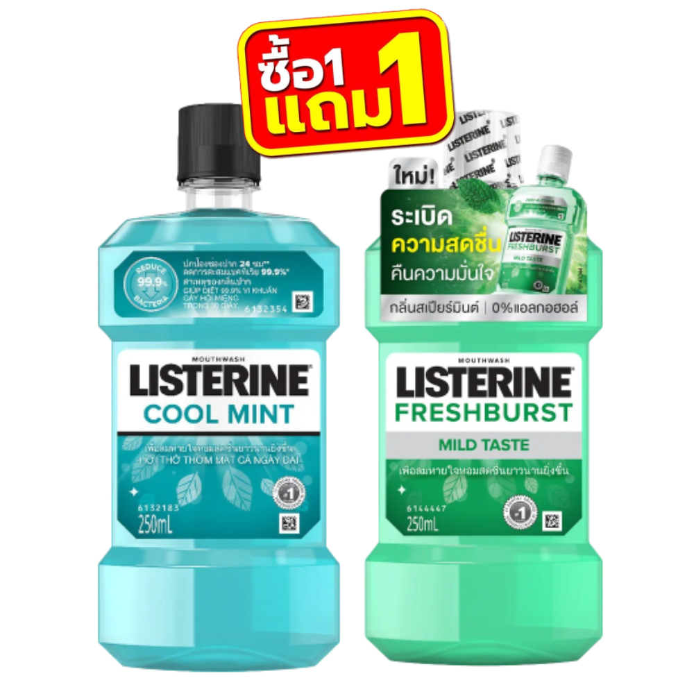 (1แถม1) Listerine Mouthwash 250ml. ลิสเตอรีน น้ำยาบ้วนปาก 250มล.