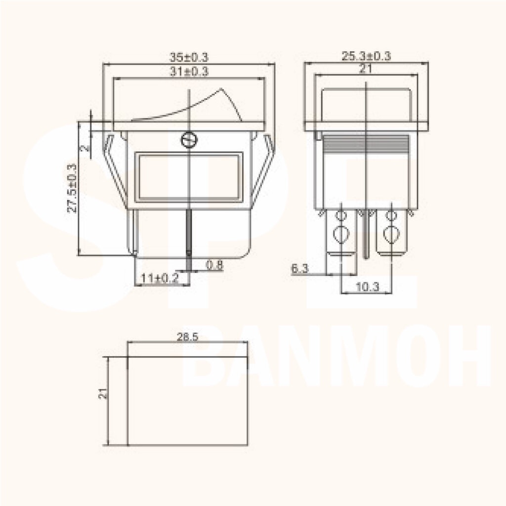 [ 2 ชิ้น ] KCD4-203N 220V แดง Red สวิทช์กระดก หนา 6 ขา 3 จังหวะ ON-OFF-ON KCD4-203 6ขา หนา มีไฟ with Lamp On Off On 3...
