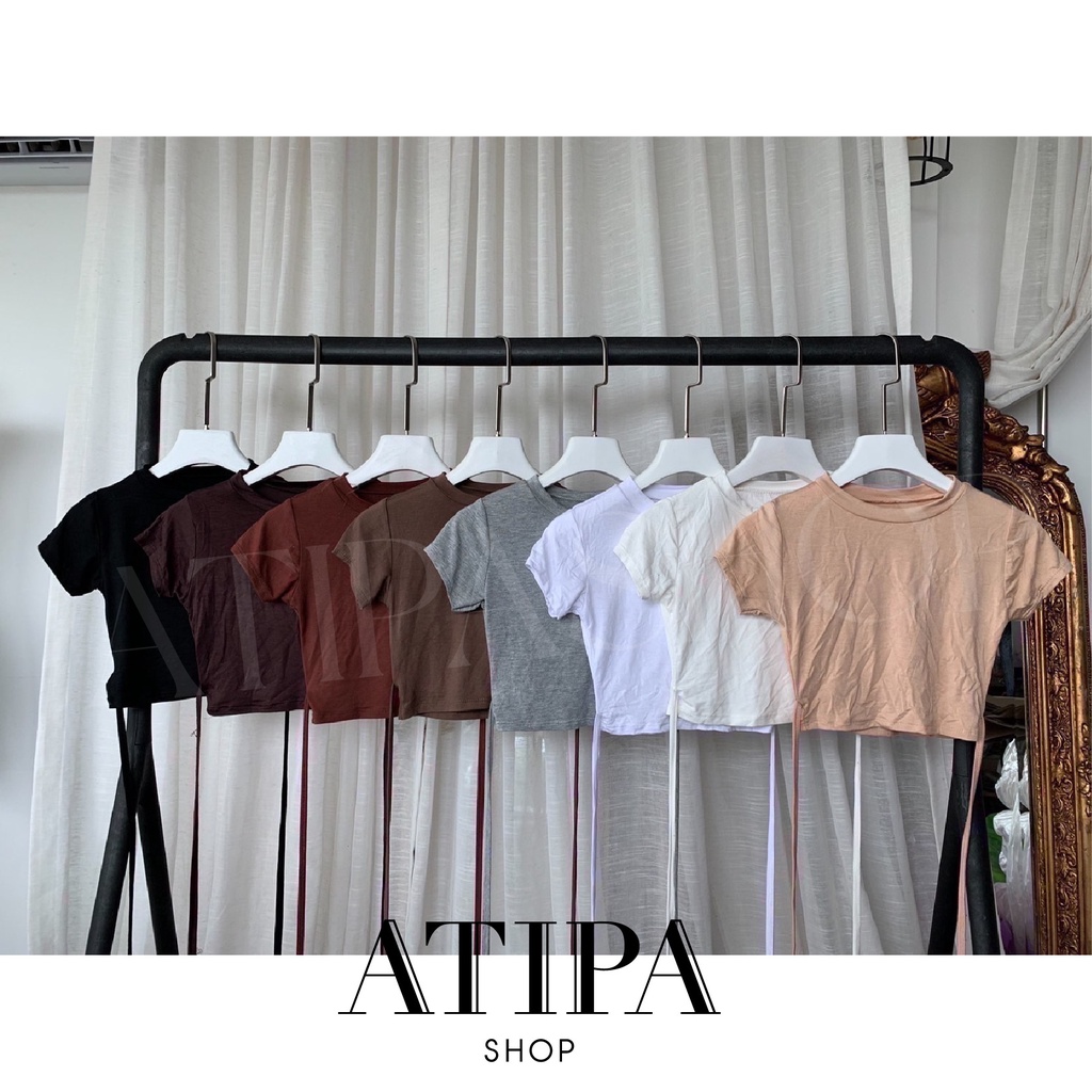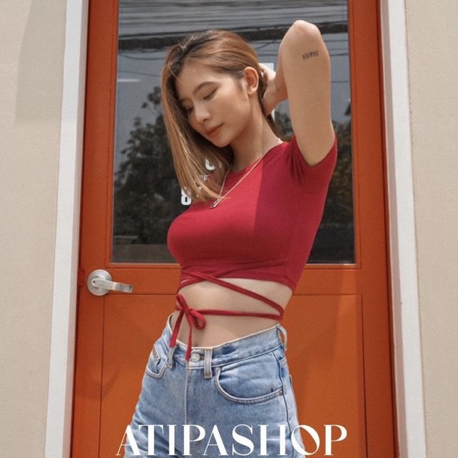 Atipashop - Bella crop เสื้อครอป แขนสั้น ดีเทลพันเอว