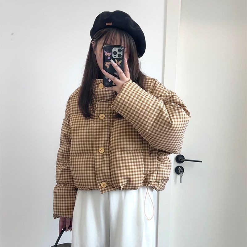 ฤดูหนาวผู้หญิง สั้นใหม่ขนมปังเกาหลีหนาแขนยาวเรียบง่ายหลวม Winter