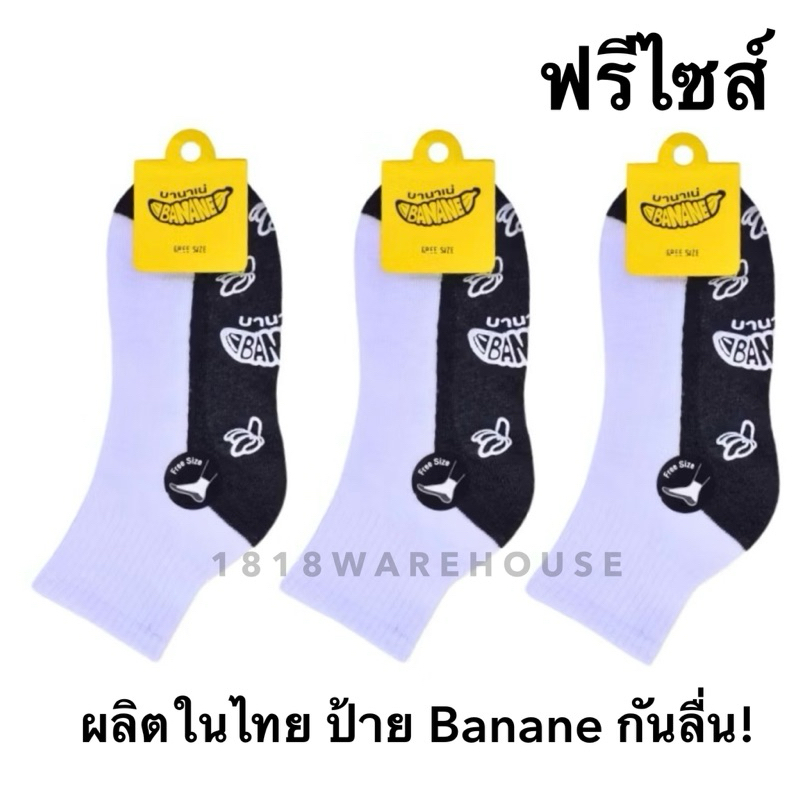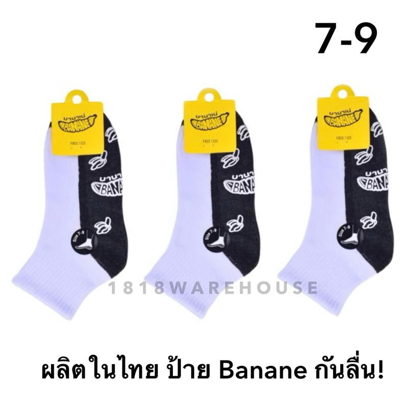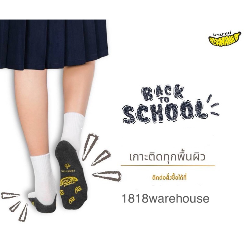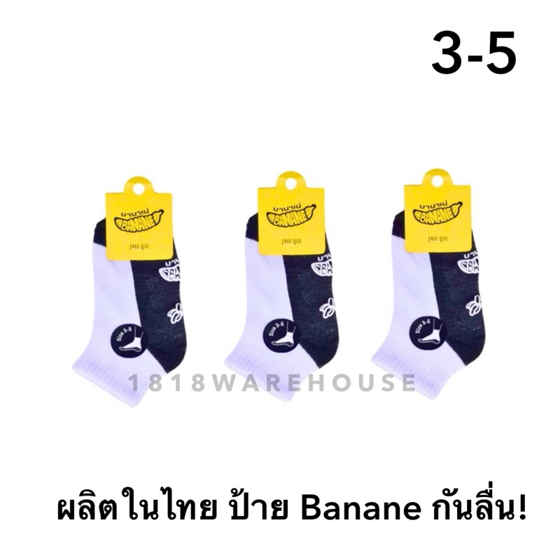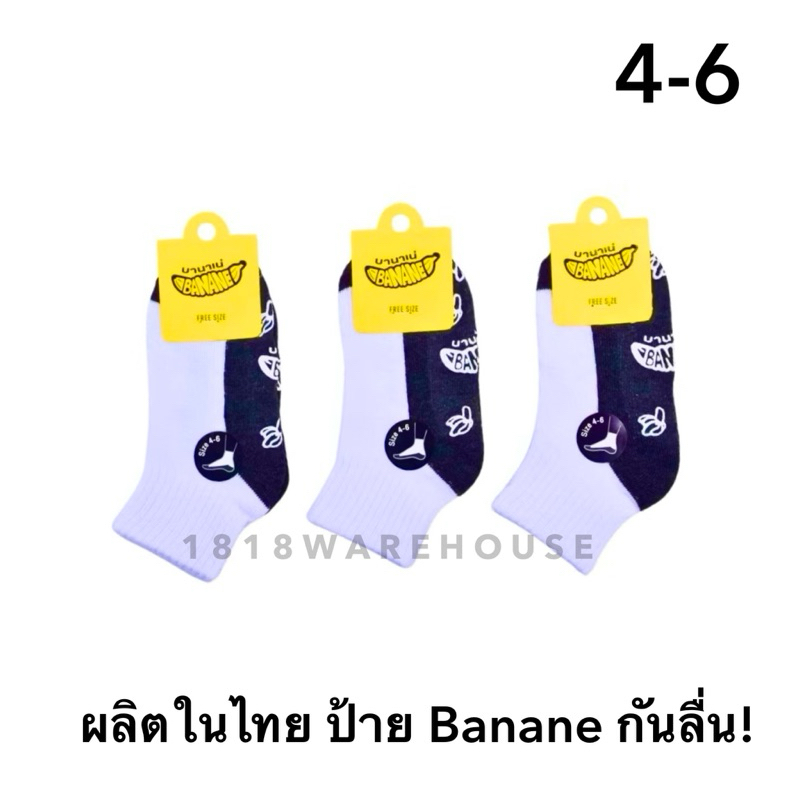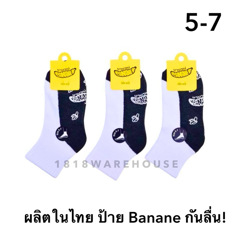 (ยกแพ็ค 6คู่, 12 คู่) กันลื่นป้าย Banane 🍌ยางกันลื่นสีขาว‼️ถุงเท้านักเรียนกันลื่น กันล้ม ป้ายกล้วย 🇹🇭ผลิตในไทย🇹🇭