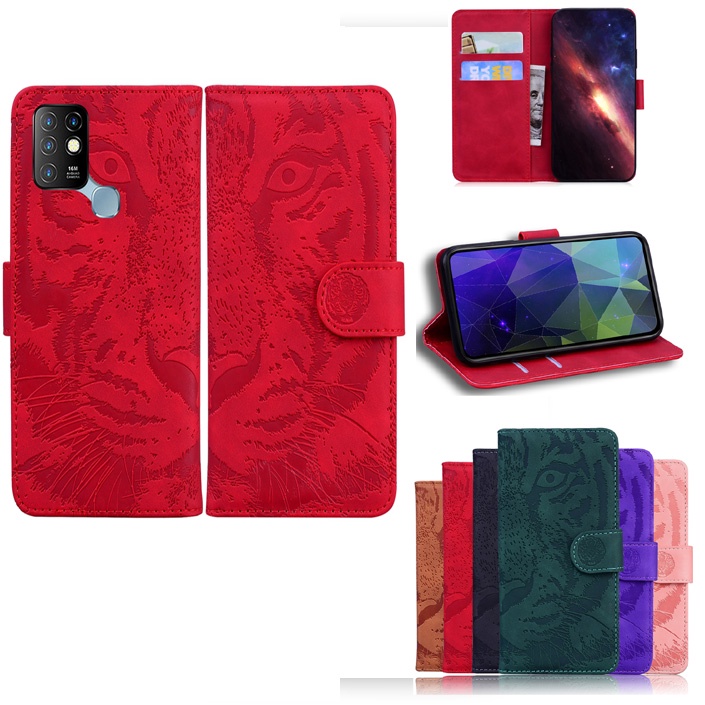 Emboss Tiger Flip Leather Case Tecno POVA 2 4G LD7 POP 5P 5 LTE BD4 Phantom X Camon 18i 18P 18 Premier Casing Dual Magnet Matte Card Holder Stand Full Protection Phone Cover luxury