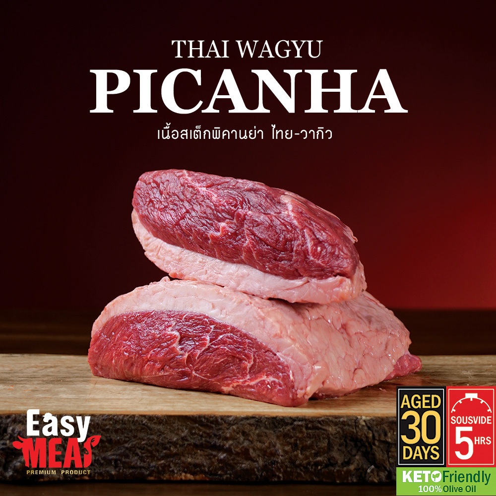 เนื้อสเต็กวัวพิคานย่า ไทยวากิว เอจ 30 วัน Picanha thai wagyu Beef aged 30 days.