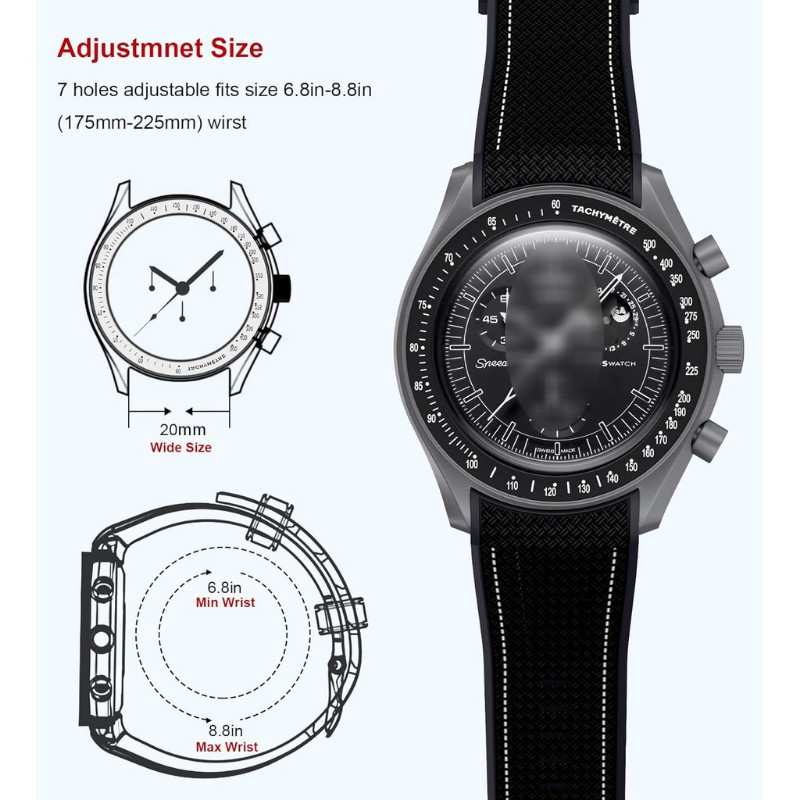 สายซิลิโคนปลายโค้ง 20 มม. สําหรับ Moonwatch - สายนาฬิกาสํารองกันน้ําและทนทาน | อุปกรณ์เสริมที่รองรับ พระเจ้าช่วย ราคาไม่แพง