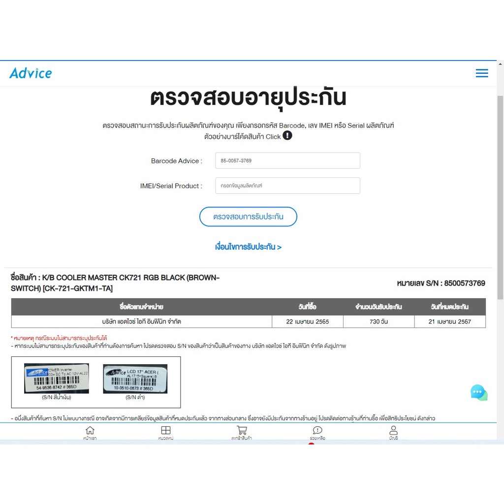 WIRELESS KEYBOARD COOLER MASTER CK721 RGB BLACK BROWN-SWITCH มีภาษาไทย