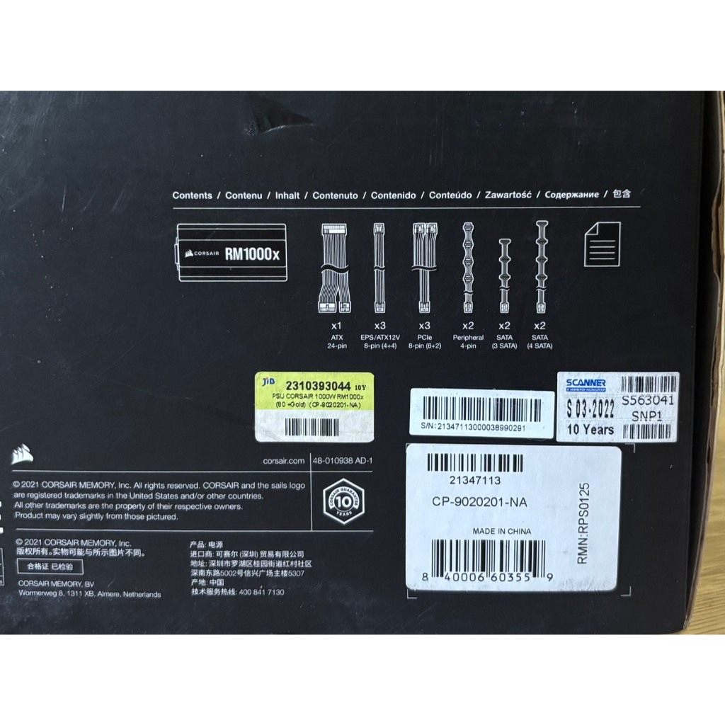 POWER SUPPLY (อุปกรณ์จ่ายไฟ) CORSAIR RM1000X - 1000W 80 PLUS GOLD