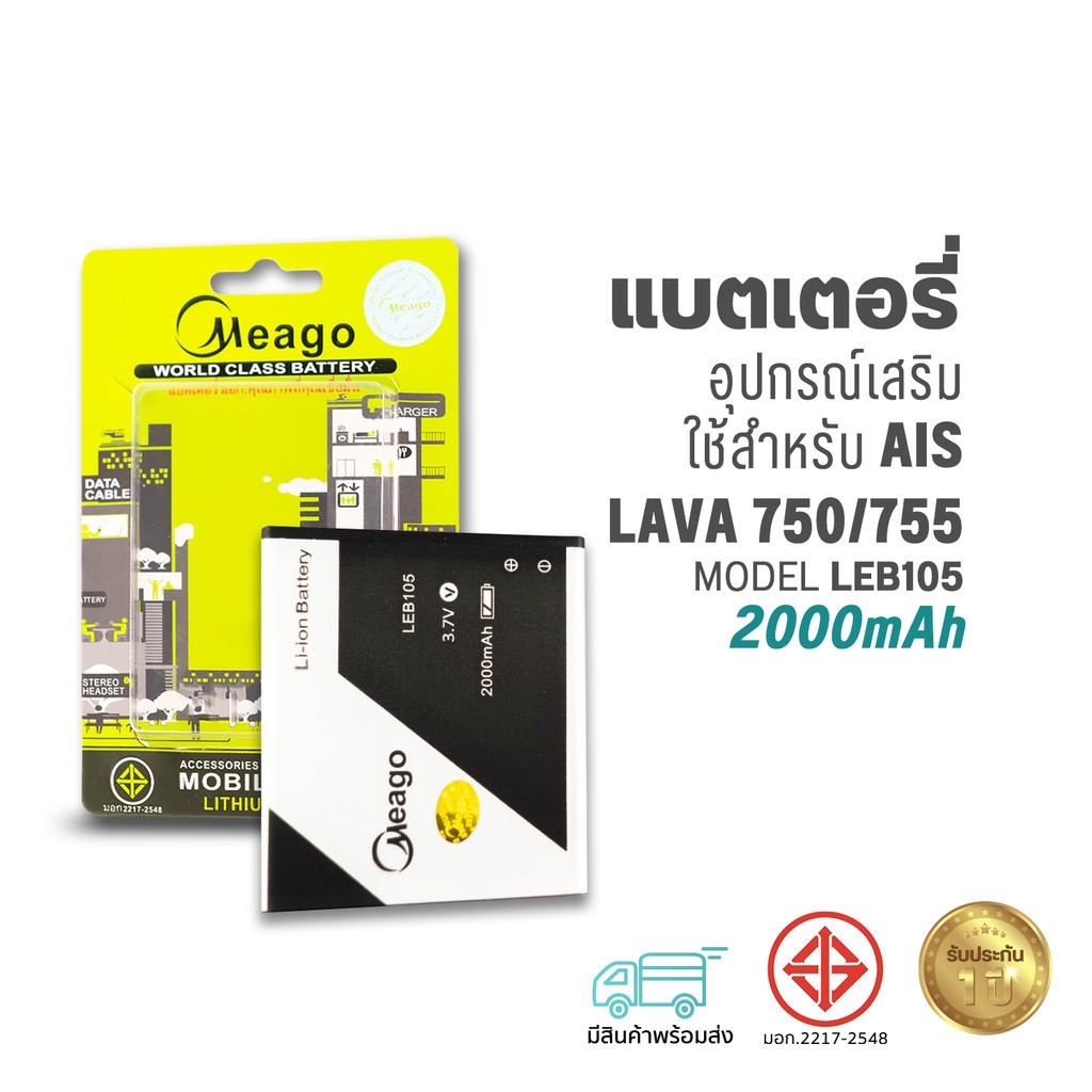 Meago แบตเตอรี่ใช้สำหรับ Ais Lava 750 / Lava 755 / Iris 750 / Iris 755 / LEB105 แบตเอไอเอส (เชครหัสที่แบตลูกค้าก่อนสั่ง)