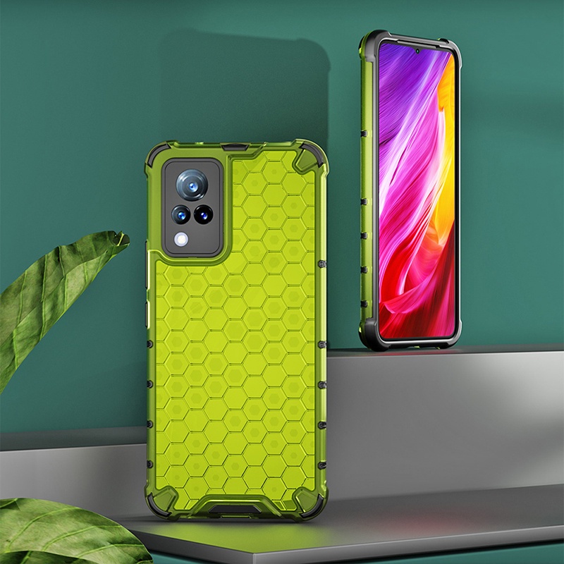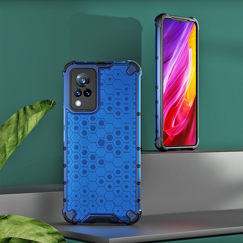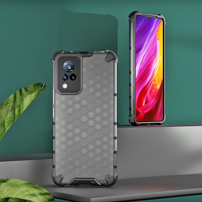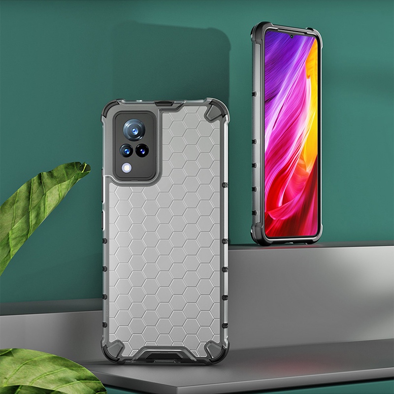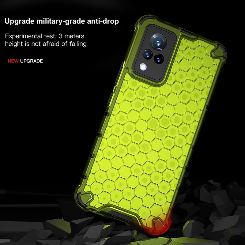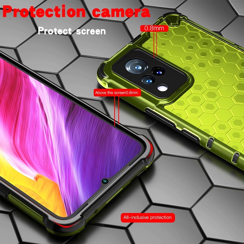 สําหรับ Vivo V21 V21e Y72 5G Y20 Y20i Y20s Y20a Y20g Y11s Y12s Y51 Y31 Y17 Y15 Y12 กรณี Hard PC & ซิลิโคนนุ่มคู่กันกระแทกป้องกันการล่มสลายรังผึ้งฝาครอบป้องกันความร้อน