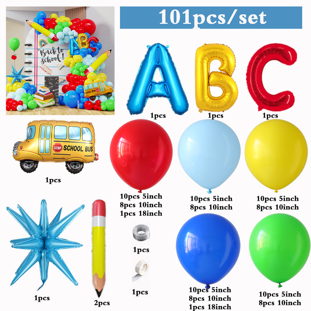 101ชิ้น/เซ็ต เอบีซี จดหมายบอลลูนรถโรงเรียนดินสอโรงเรียนฤดูกาลฉากเค้าโครงตกแต่งบอลลูนพิธีโรงเรียนบอลลูน