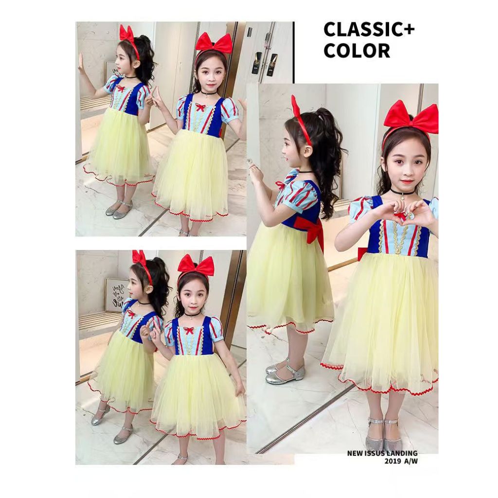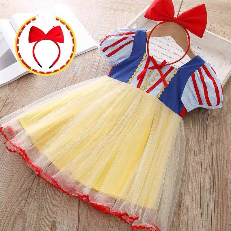 2025ใหม่ g irls 'ชุดเจ้าหญิงสโนว์ไวท์ลายการ์ตูนระบายอากาศและมีสไตล์ชุดฤดูร้อนสำหรับเด็ก