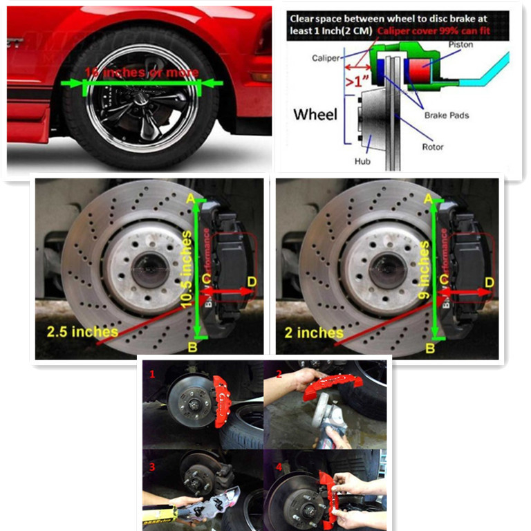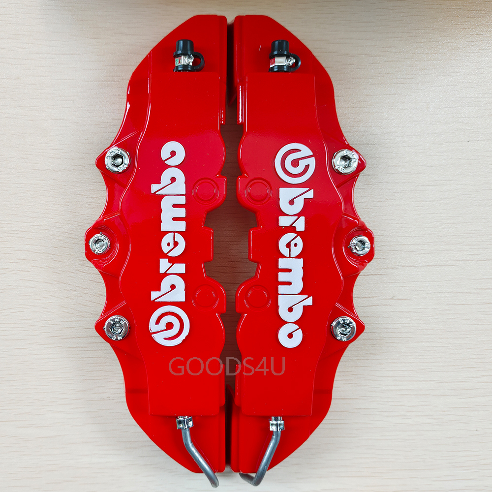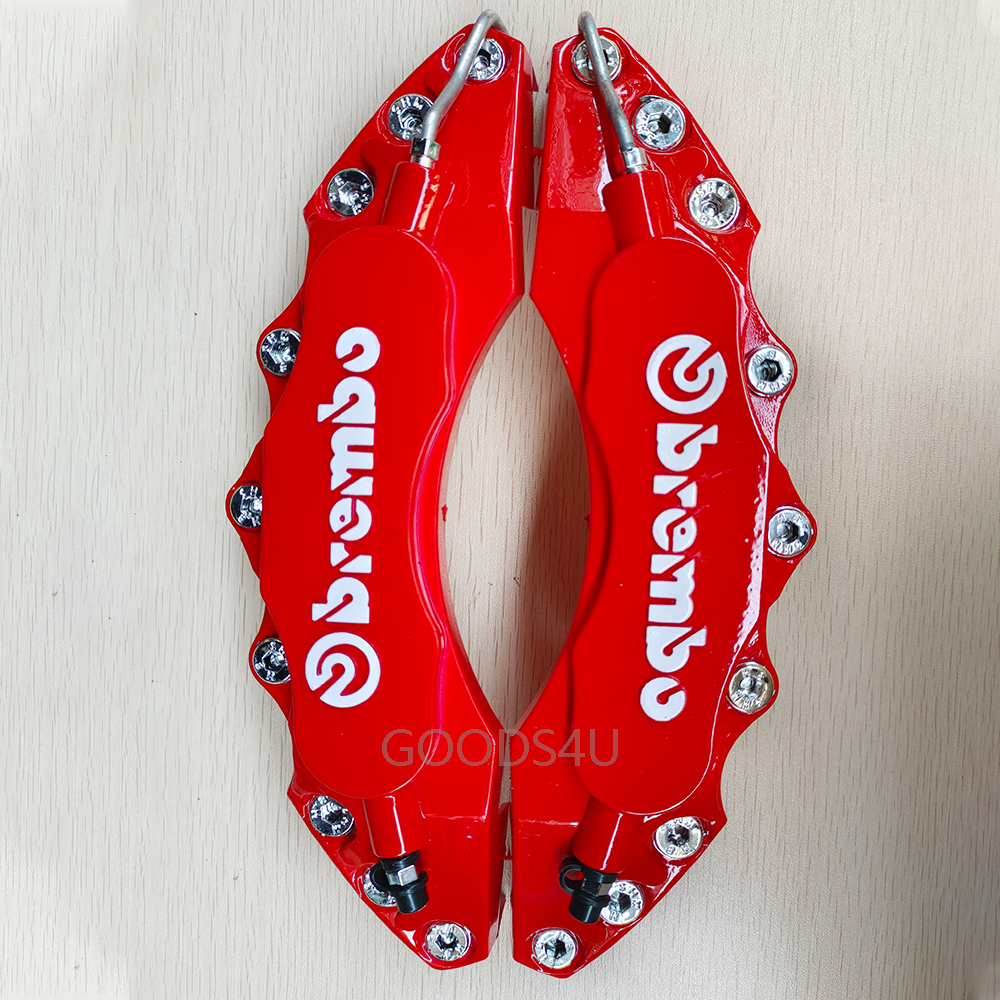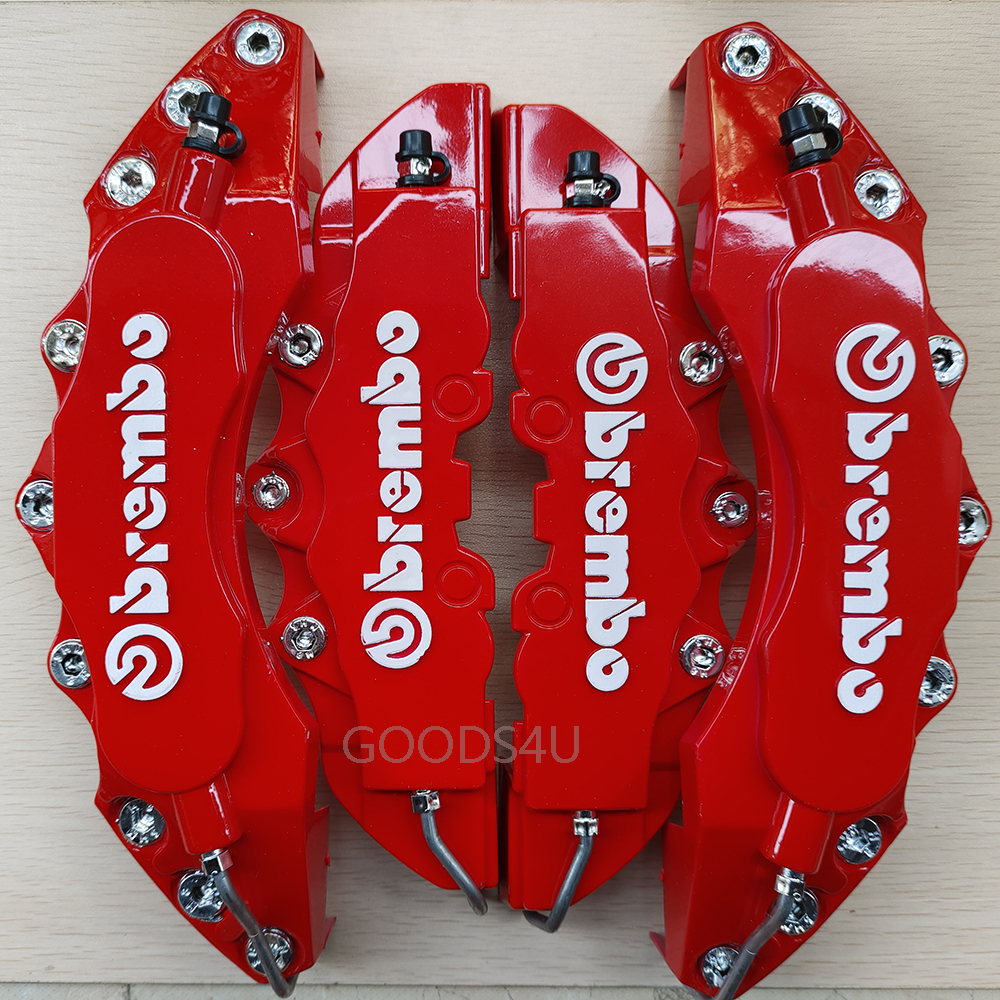 4ชิ้น3ง สากลสีแดงรถแข่งรถดิสก์เบรกคาลิปเปอร์ครอบคลุมขนาดใหญ่+กลาง(ล+ม)ชุดสําหรับล้อ17หรือ18นิ้ว เพื่อตกแต่งส่วนบุคคลของดุมล้อรถคุณ