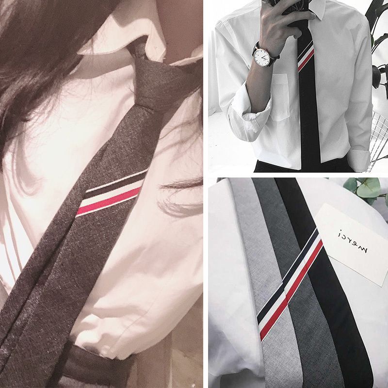Tb เนคไทผู้ชาย ผู้หญิง สไตล์กระโหลก เวอร์ชั่นเกาหลี เนคไทที่ไม่ซ้ําใคร สามสี ลายทาง คนขี้เกียจ ฟรีซิป เนคไทผู้ชาย สีดํา dk อุปกรณ์เสริม