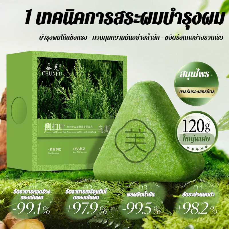 🌼สินค้าขายดี🌼Platycladus Orientalis Usman Shampoo Soap เซเว่นกรีนเจ็ดสีเขียวด้านข้างใบไซเปรส อุสมา หญ้าแชมพูสบู่แชมพูสบู่พืชธรรมชาติป้องกันผมร่วงป้องก ันอาการคันควบคุมน้ํามัน ป้องกันผมร่วง แก้ปัญหาหนังศีรษะแห้ง