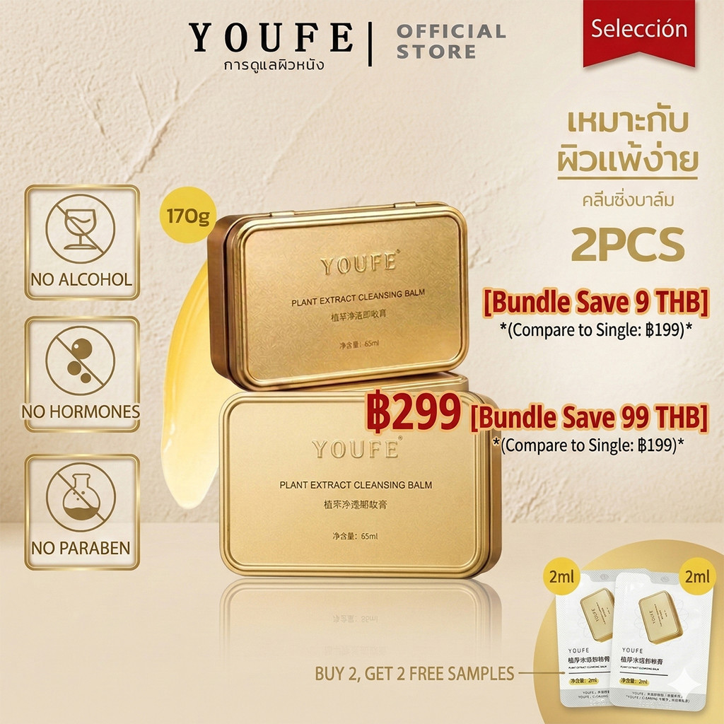 YOUFE (บริษัทโดยตรง) 170g คลีนซิ่งบาล์ม โปร2ตลับ พร้อมส่ง เเบรนด์เเท้100% คลีนซิ่งบาล์ม ผิวแพ้ง่ายใช้ได้ Makeup Remover