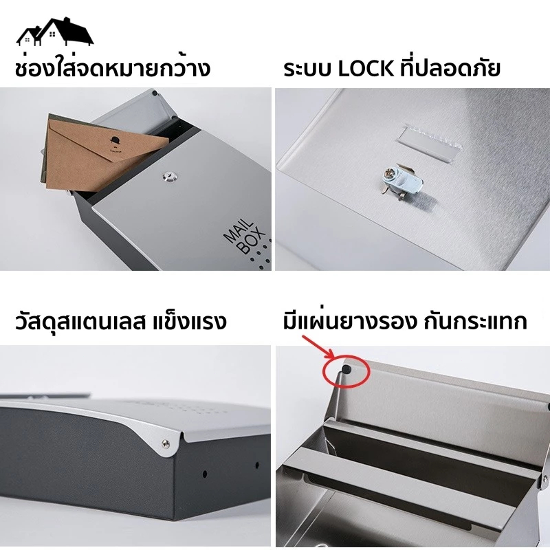 ตู้จดหมาย ตู้ไปรษณีย์ กล่องจดหมาย ตู้รับจดหมาย เหล็กกล้าไร้สนิม นิตยสารได้ วัสดุแข็งแรง ทนทาน
