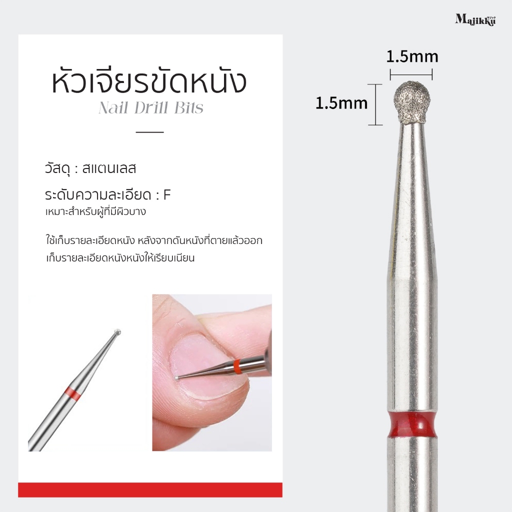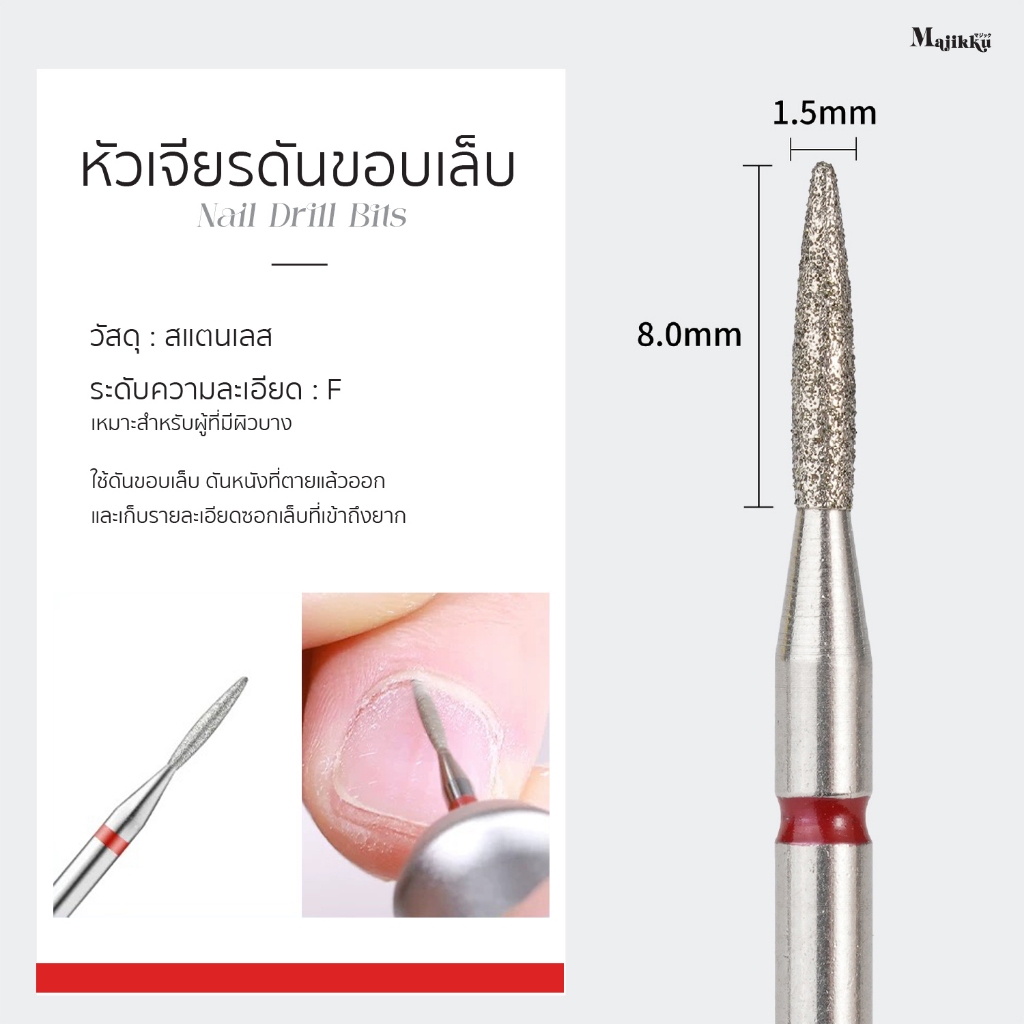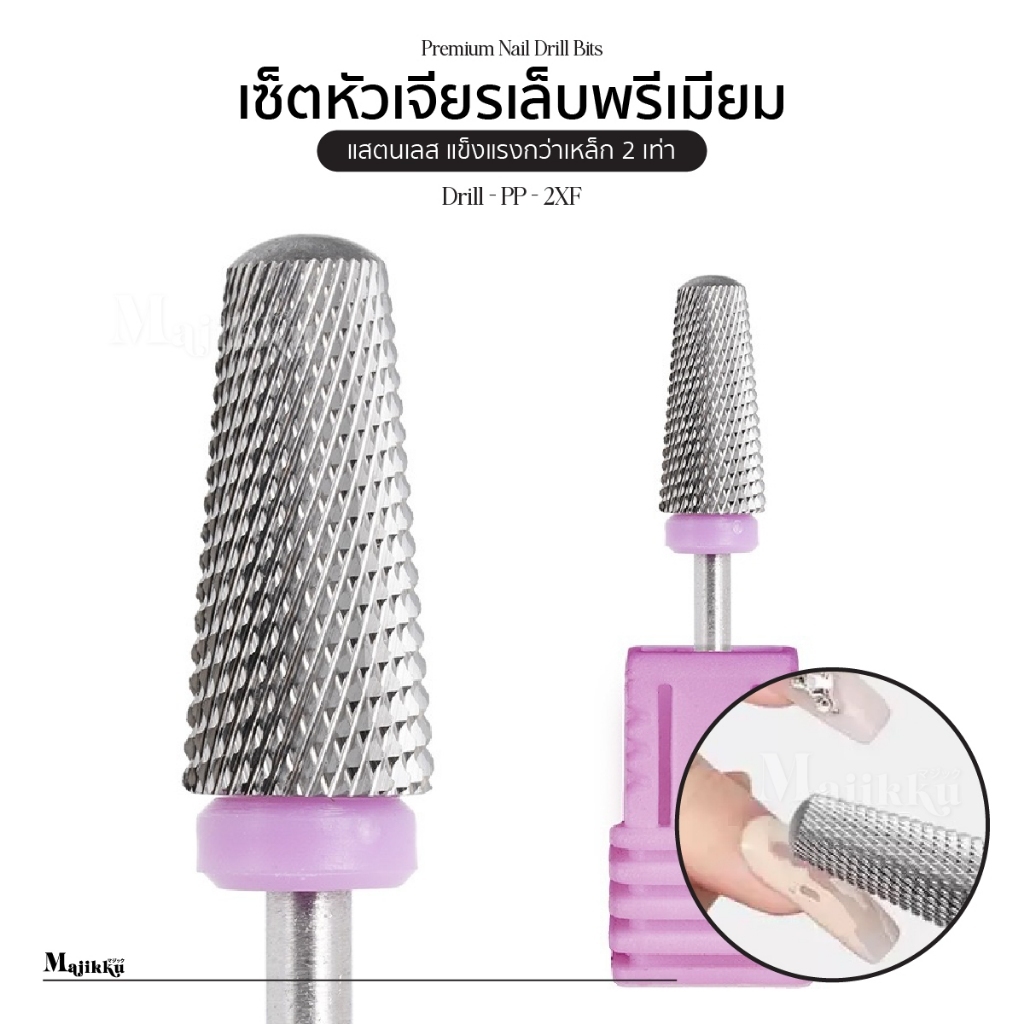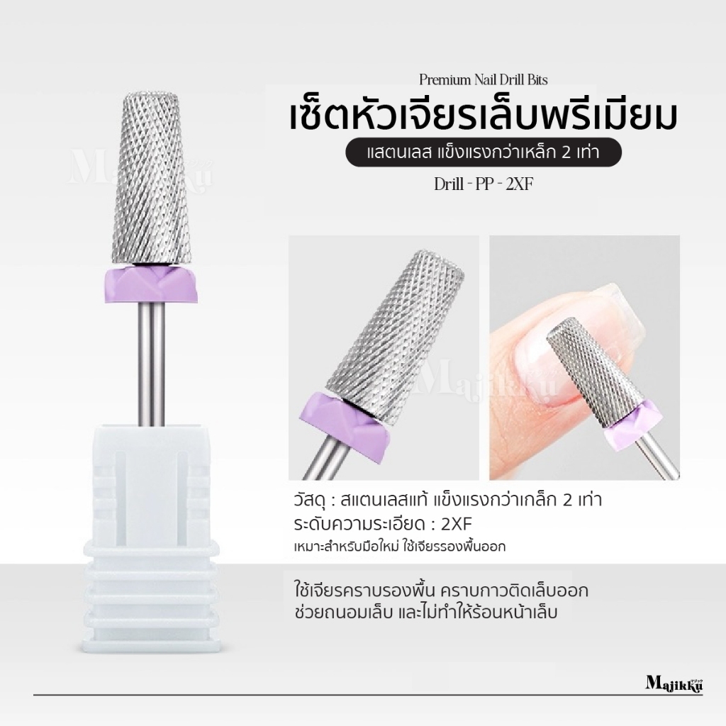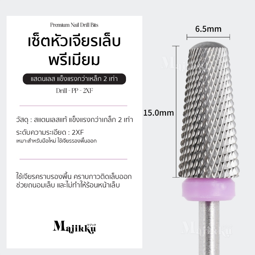 หัวเจียรเพชร Majikku หัวเจียร 2XF diamond ทําเล็บสไตล์รัสเซีย ขอบม่วง ทำจากสแตตเลสอย่างดี แข็งแรง
