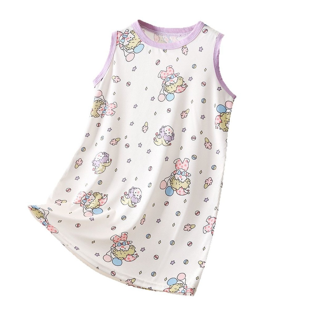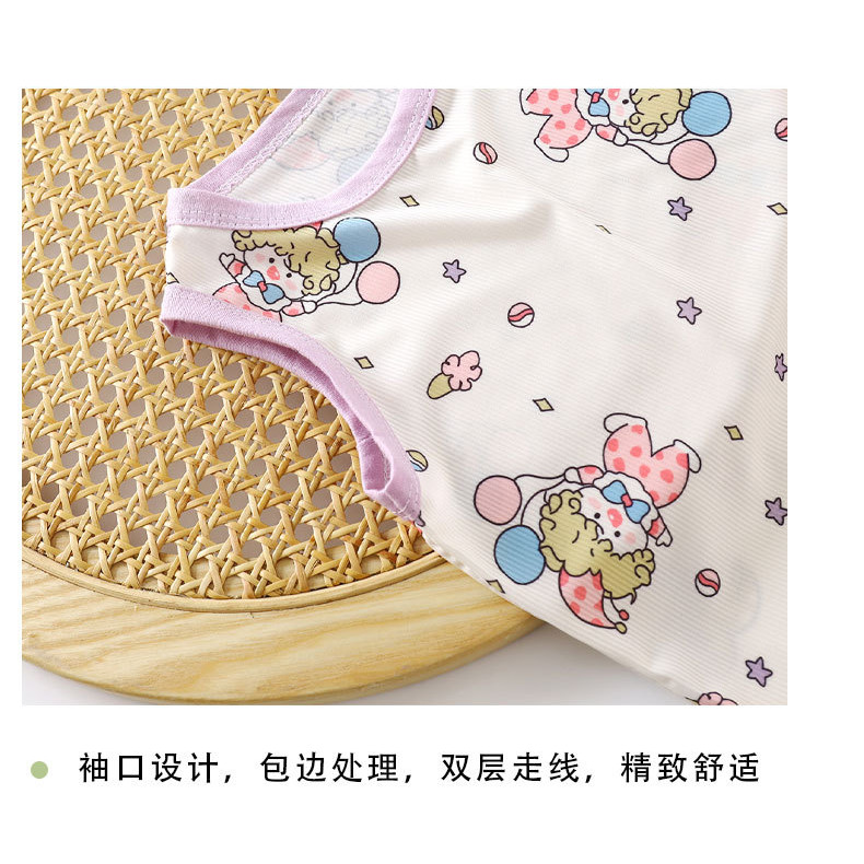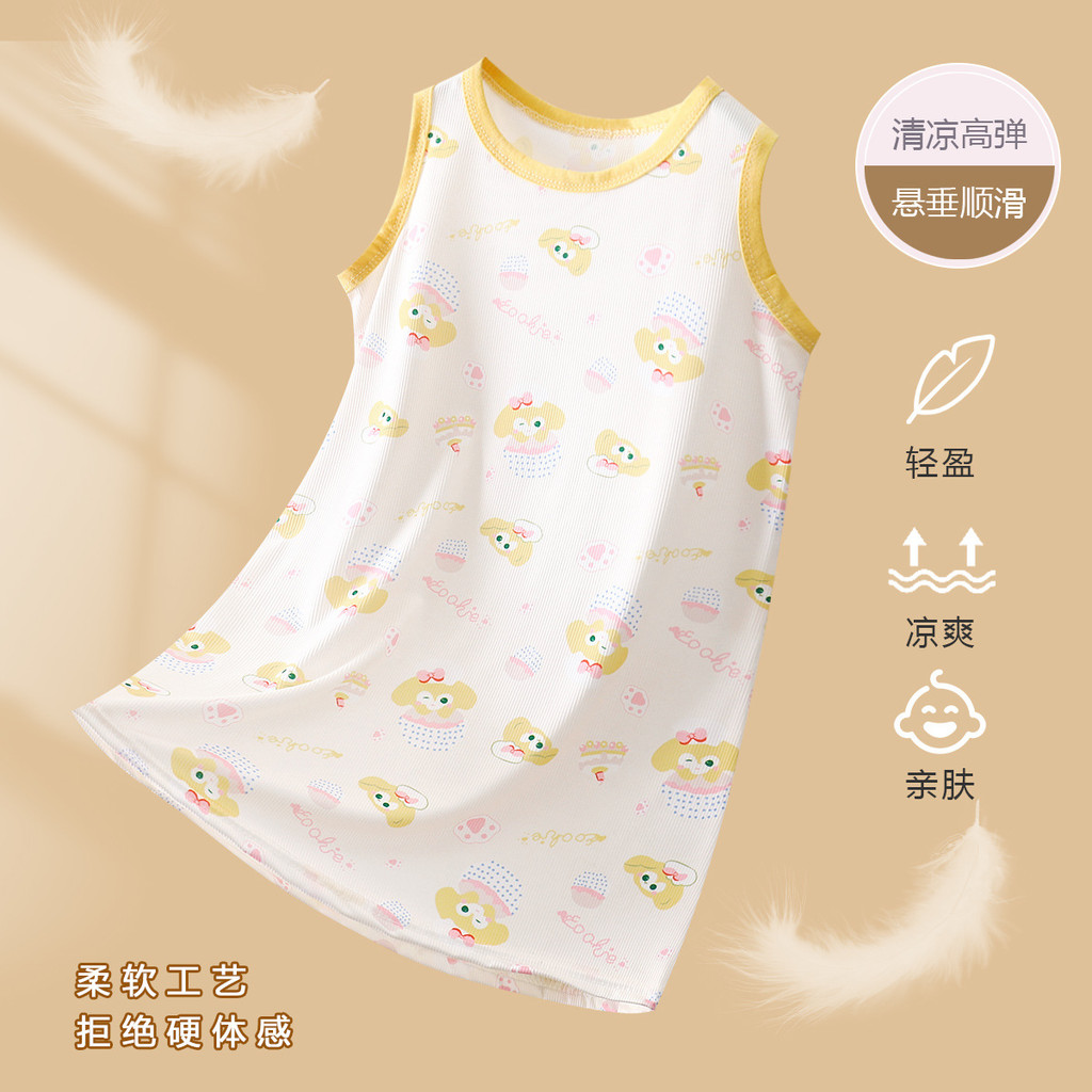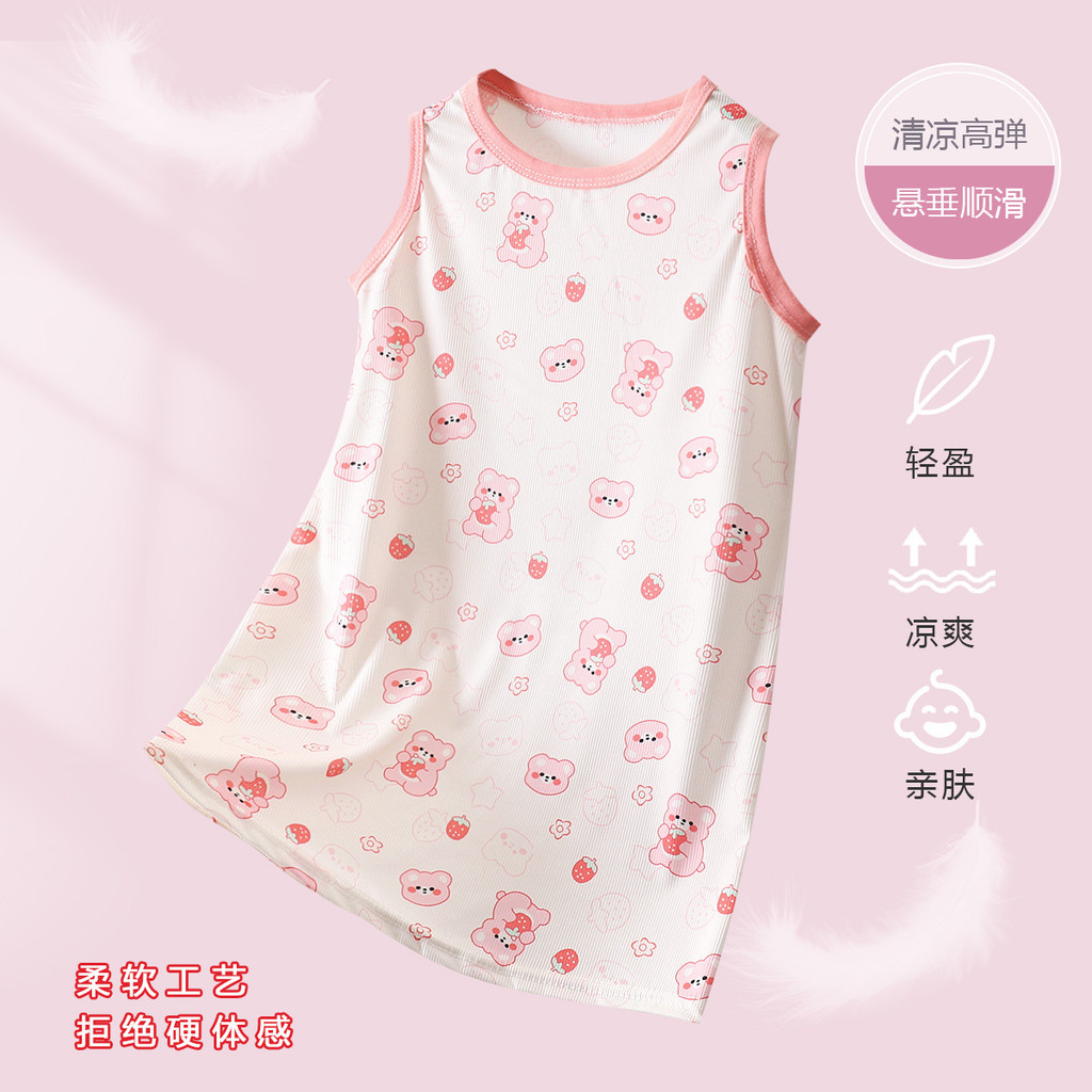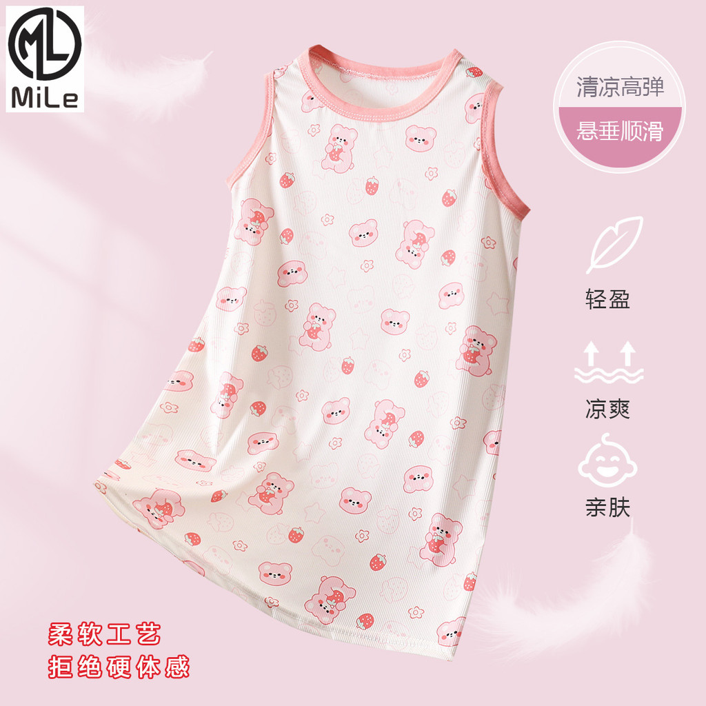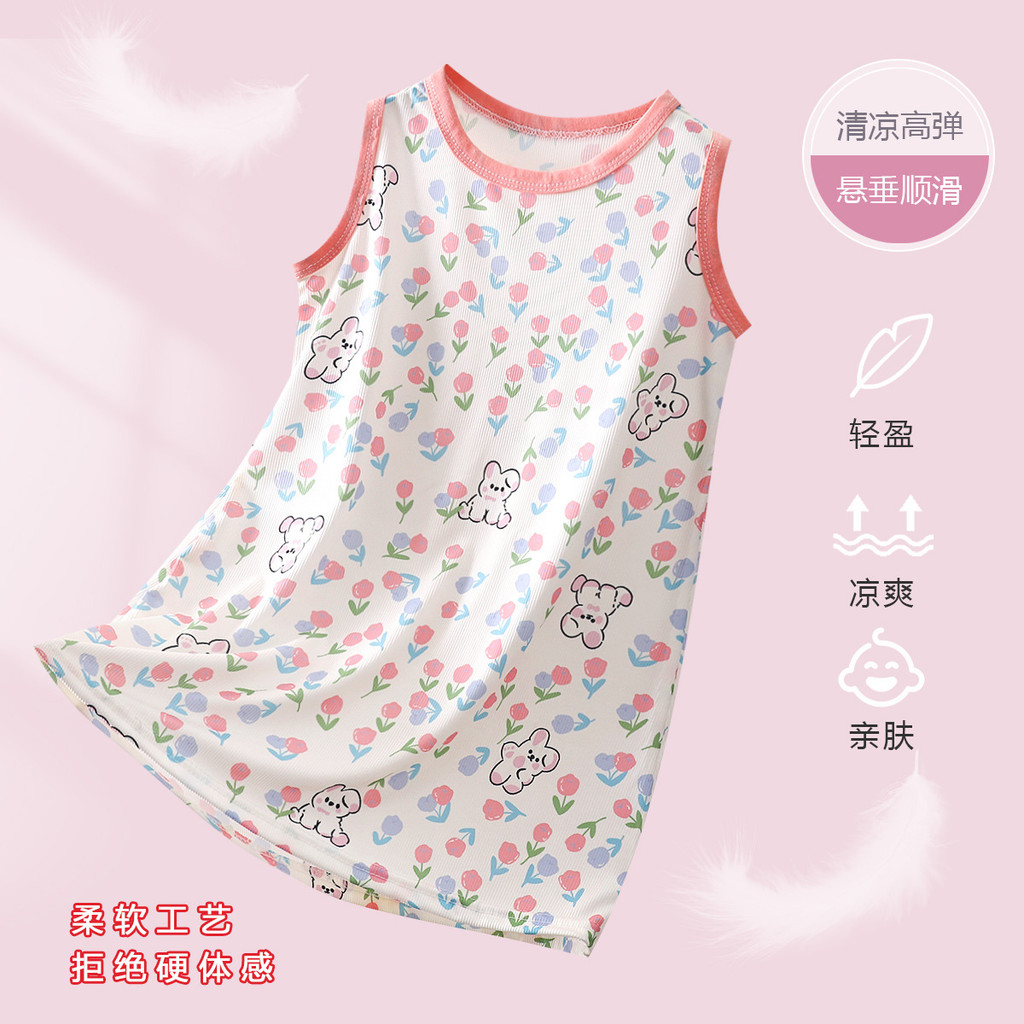 [มล] 80-140เซนติเมตรฤดูร้อนสาว ชุดนอน ผ้าไหมน้ําแข็งชุดเจ้าหญิงเด็กผ้าไหมน้ําแข็งบางสไตล์ชุดนอนเด็กสาวเสื้อกั๊กกระโปรง ชุดลําลอง