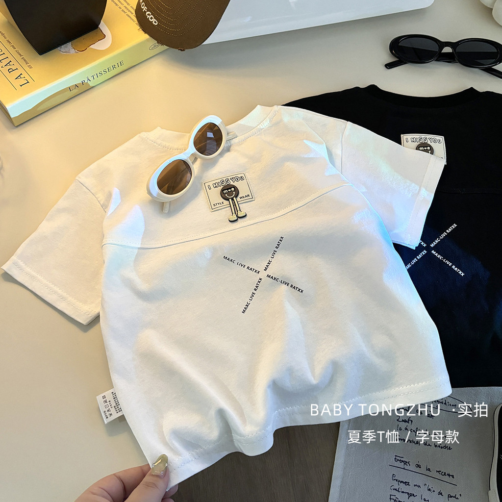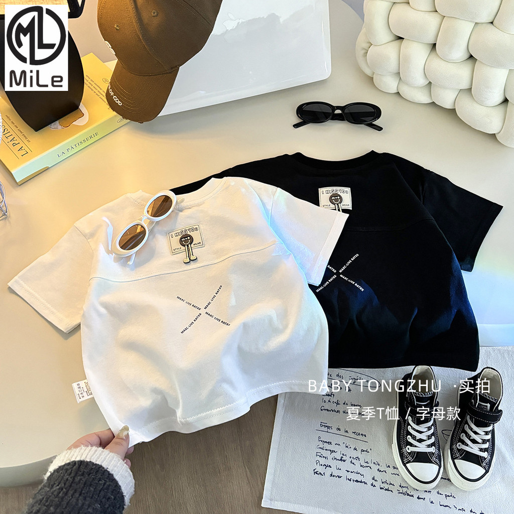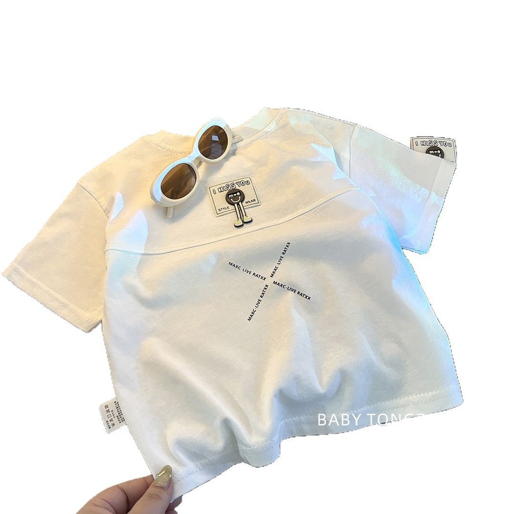 [มล] 73-150ซม เด็กฤดูร้อนผ้าฝ้ายแท้แขนสั้นเย็บเวอร์ชั่นเกาหลีชายหญิงเสื้อแขนสั้นแฟชั่นสีทึบ อภิบาล