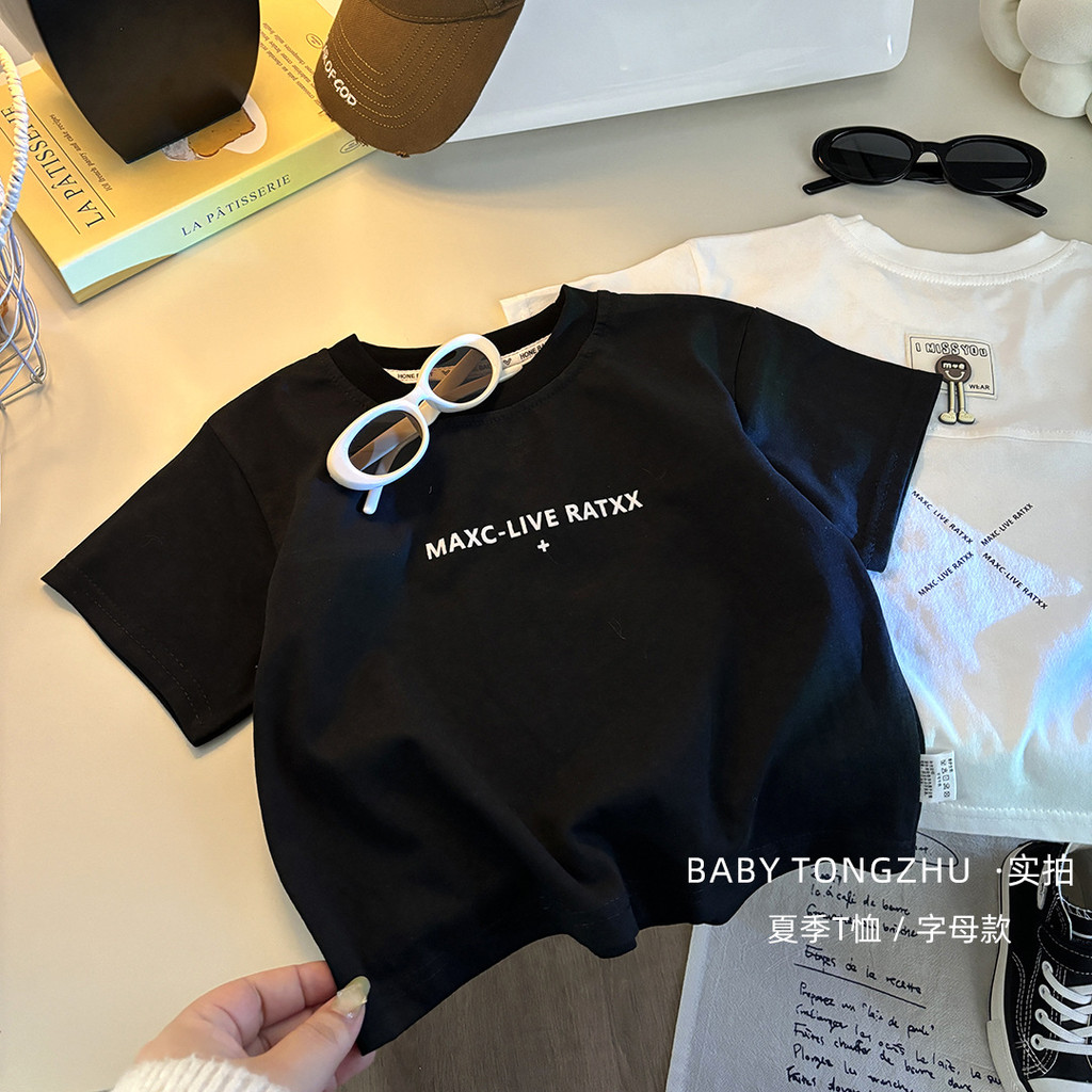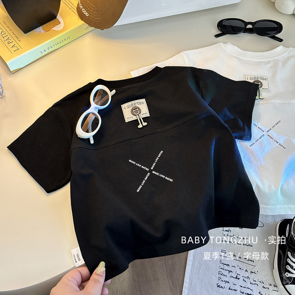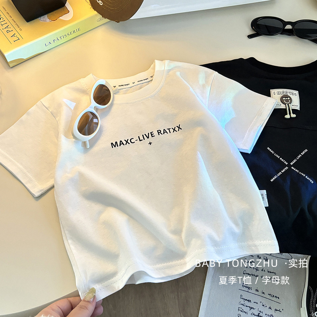 [มล] 73-150ซม เด็กฤดูร้อนผ้าฝ้ายแท้แขนสั้นเย็บเวอร์ชั่นเกาหลีชายหญิงเสื้อแขนสั้นแฟชั่นสีทึบ อภิบาล