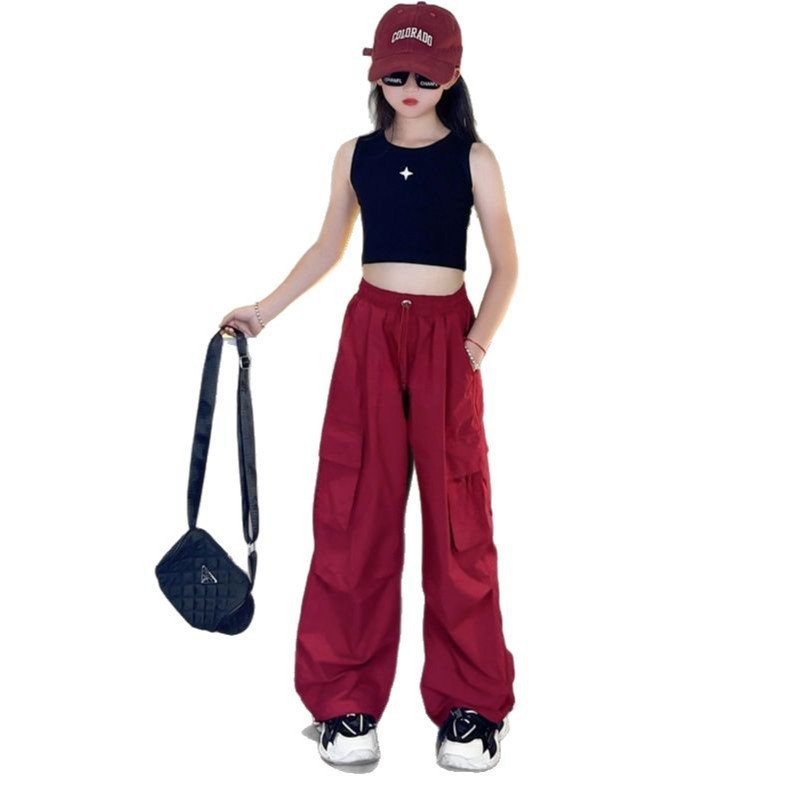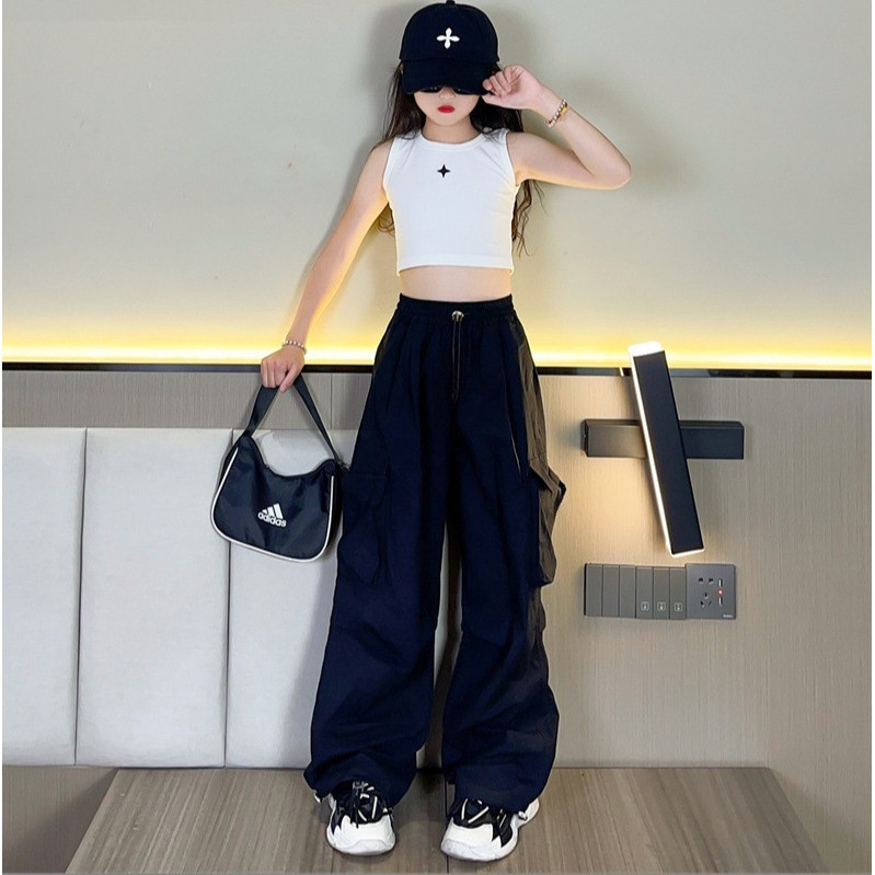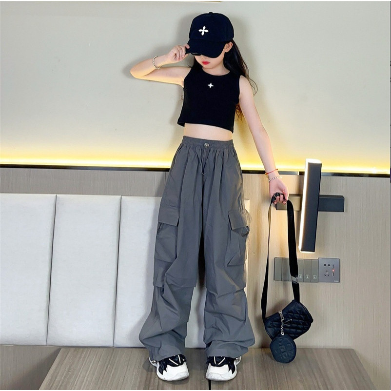 [ML] 100-170 ซม.สาวฤดูร้อน Overalls ฤดูใบไม้ผลิฤดูร้อนฤดูใบไม้ร่วงกางเกงบางกลางเด็กใหญ่หลวมกางเกงลําลองขากว้าง