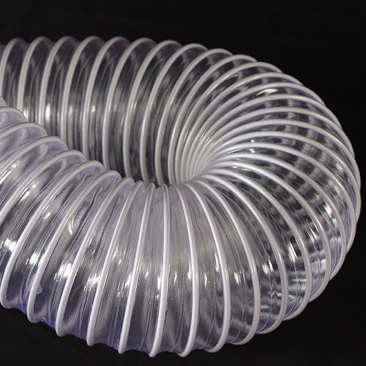 ☬ท่อลูกฟูกลวดเหล็ก PVC สีขาวใส, ท่อระบายอากาศ, ท่อกำจัดฝุ่น, ท่อสูญญากาศเครื่องจักรงานไม้