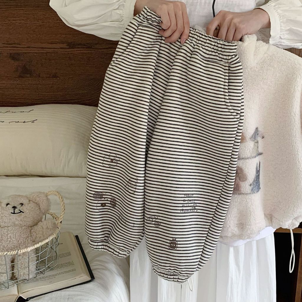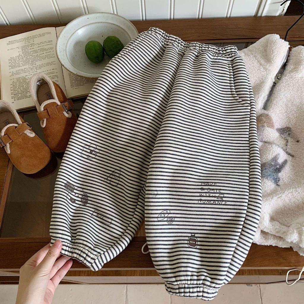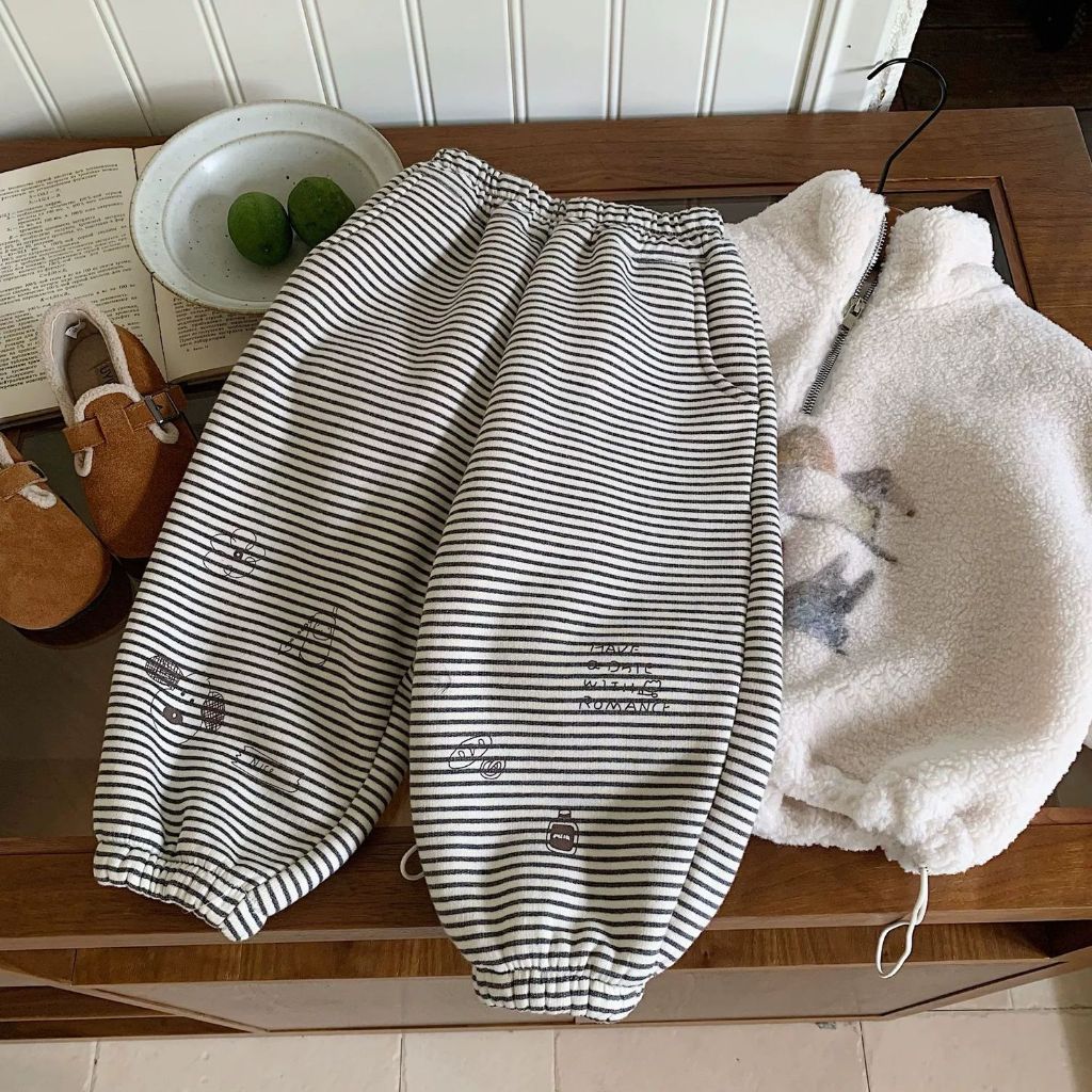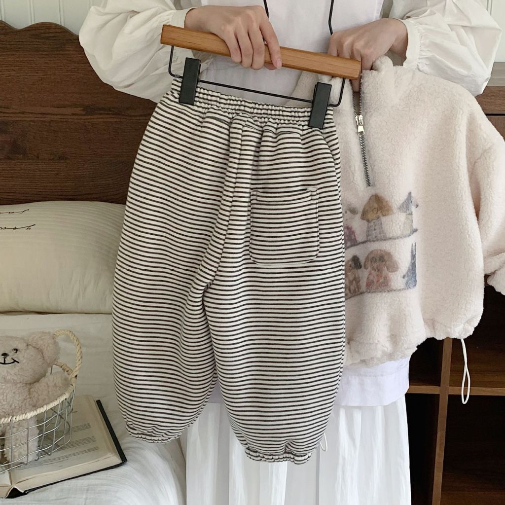 กางเกงเด็กทรงหลวมสำหรับฤดูหนาว มีลายเหมือนขนแกะ สไตล์เกาหลี อบอุ่นและสวมใส่ง่าย สำหรับทั้งเด็กชายและเด็กหญิง