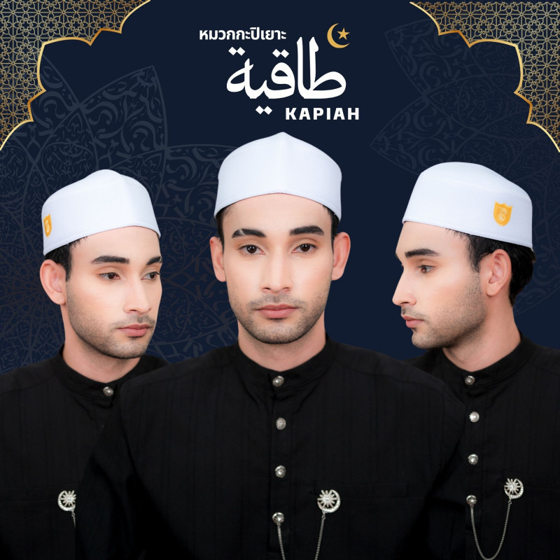 หมวกมุสลิมชายหรือหมวกอิสลาม หมวกกะปิเยาะห์ ทรงสวยเนื้ออย่างดี ไว้สำหรับใส่ละหมาดหรือรับแขก GA24