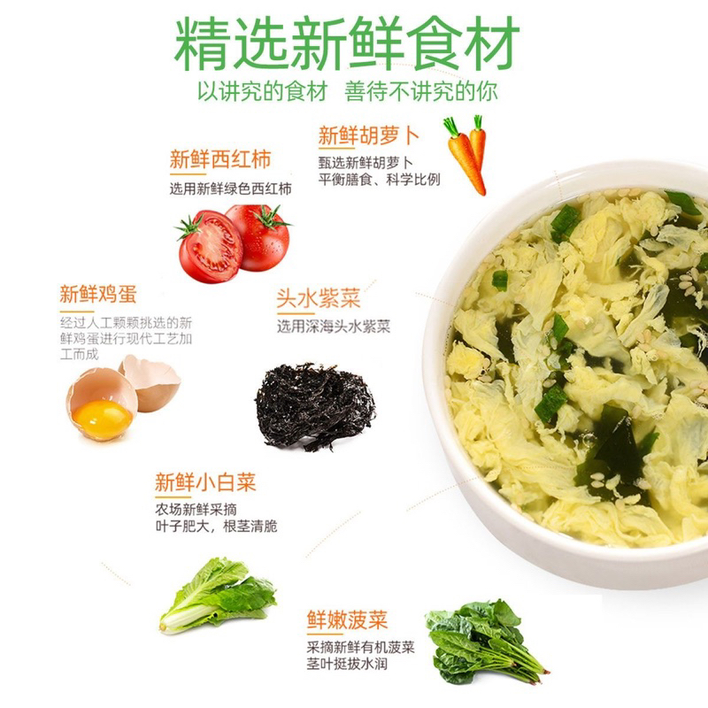 chainatown.th ซุปกึ่งสำเร็จรูป ซุปไข่สาหร่าย แบบอัดก้อน ขนาด 6กรัม ซุปไข่ผักโขม ซุปใสผสมเห็ดหอม Egg Soup 6g 蛋花汤