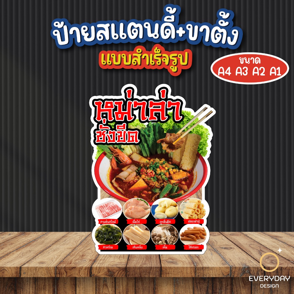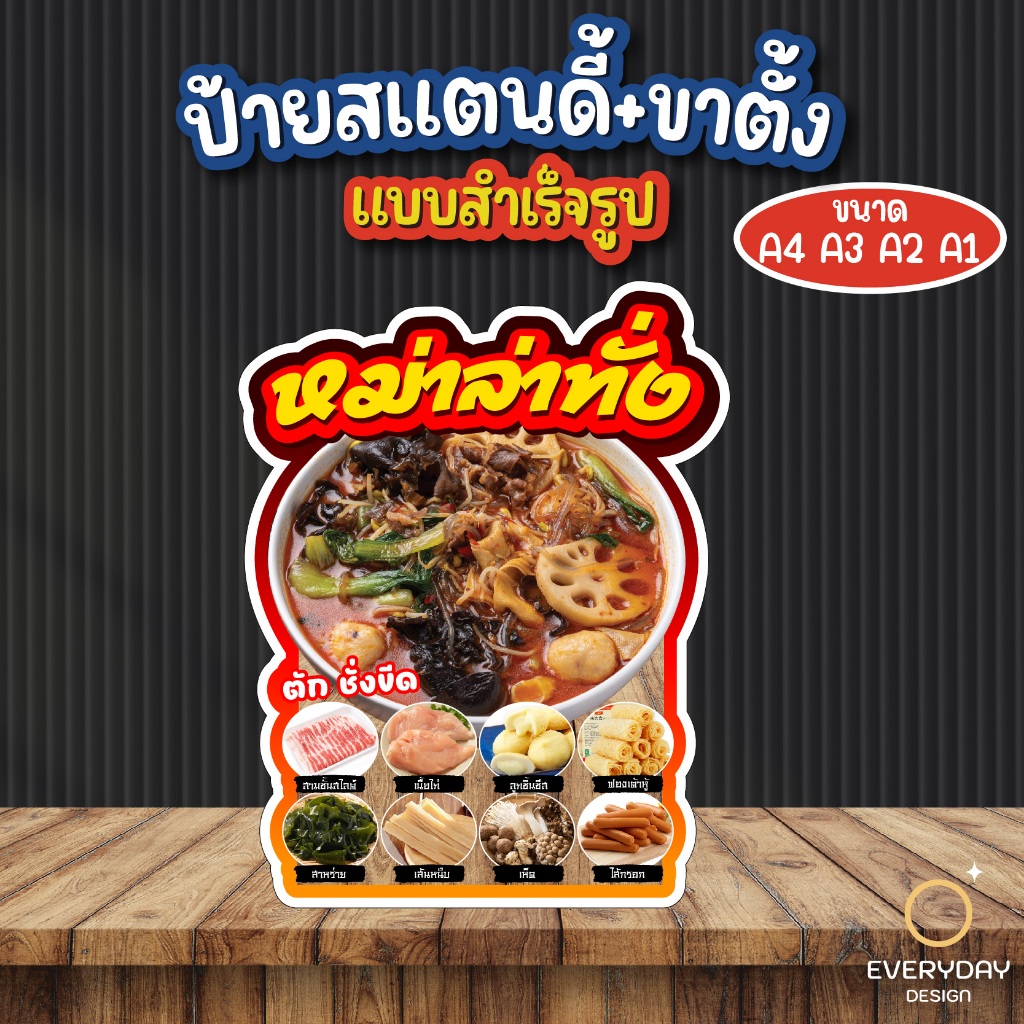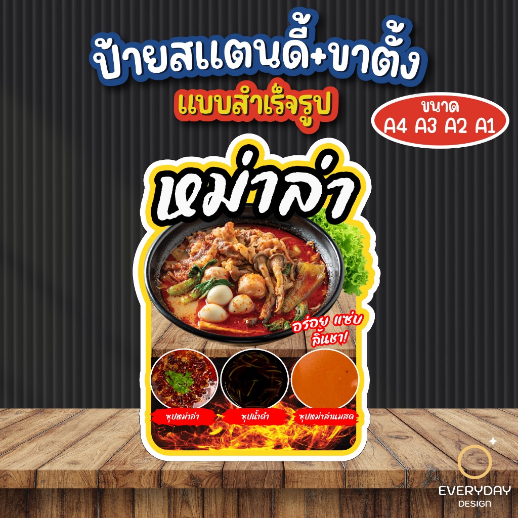 ป้ายหม่าล่า ปิ้งย่าง ป้ายสแตนดี้ตั้งโต๊ะ พร้อมขาตั้ง ขนาด A4 A3 A2 A1 ป้ายฟิวเจอร์บอร์ด พร้อมส่ง