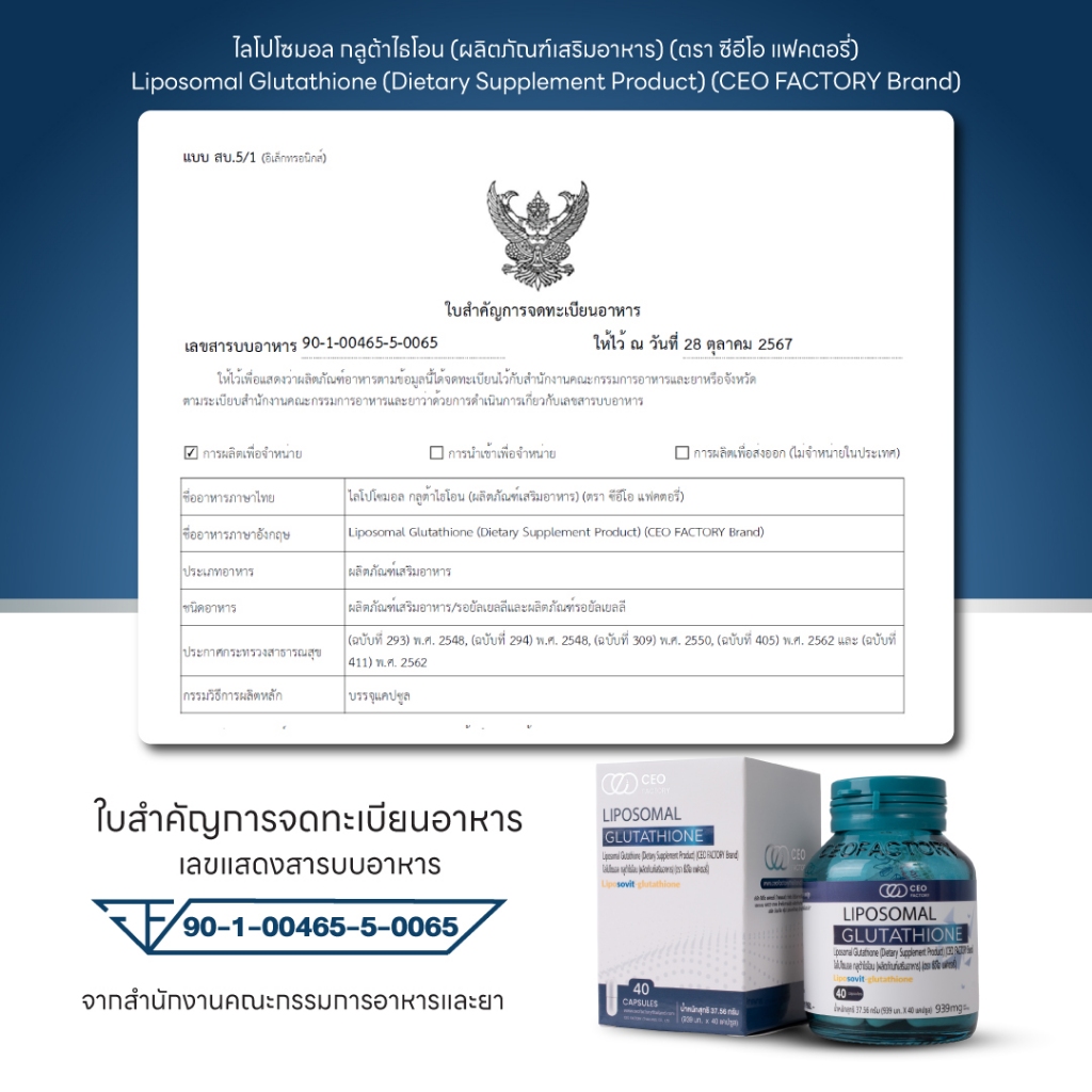Liposomal Glutathione ไลโปโซมอล กลูต้าไธโอน (ผลิตภัณฑ์เสริมอาหาร) (CEO Factory Brand)