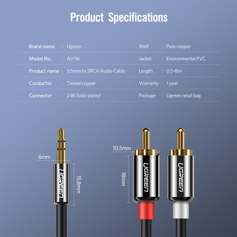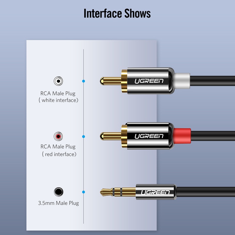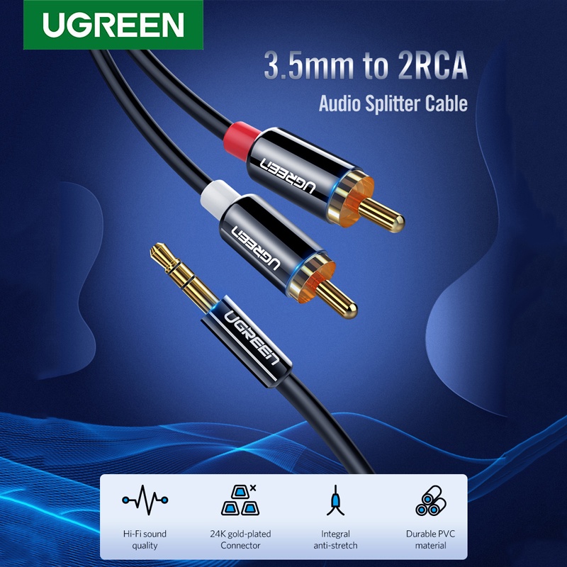 ugreen 3 . 5 มม. to 2rca อุปกรณ์สายเคเบิ้ลเสียง hifi stereo y splitter สายเคเบิ้ล