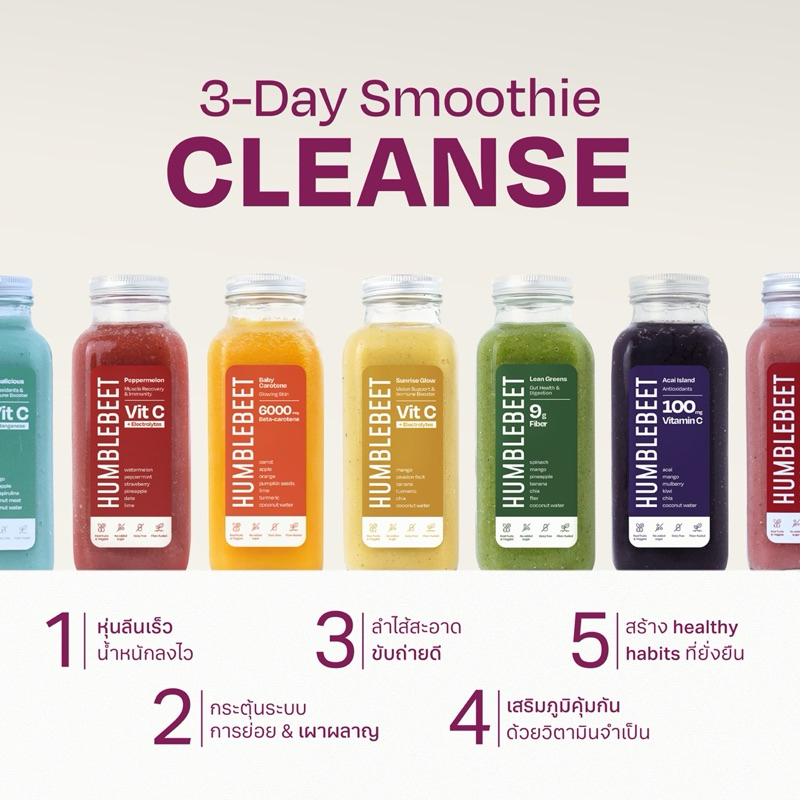 คอร์สน้ำผักผลไม้ปั่น ไม่แยกกาก แทนมื้ออาหาร คุมน้ำหนัก เสริมวิตามิน Smoothie Cleanse ชุด 12ขวด