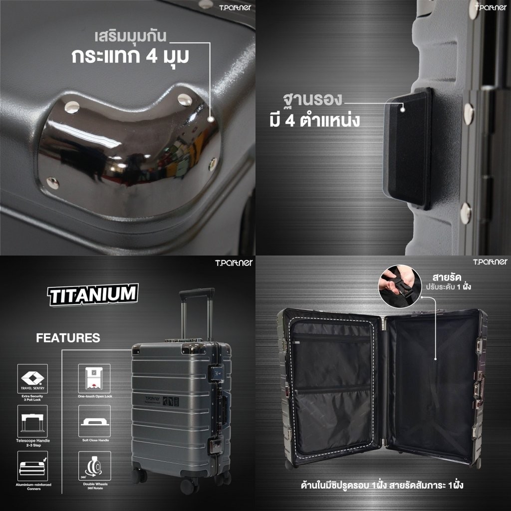 (ประกัน3ปี) Tpartner กระเป๋าเดินทาง Titanium กระเป๋าเดินทางล้อลาก โครงอลูมิเนียม มุมกันกระแทก 4 มุม