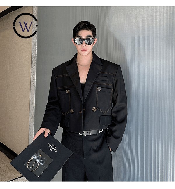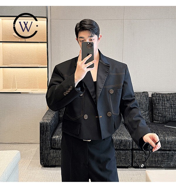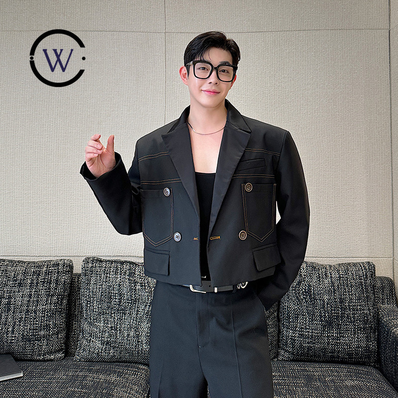 Dark Style Niche Designer Open Line Contrast Color All-Match Short Suit Jacket W2506PG9145 21B9 Performance เครื่องแต่งกาย