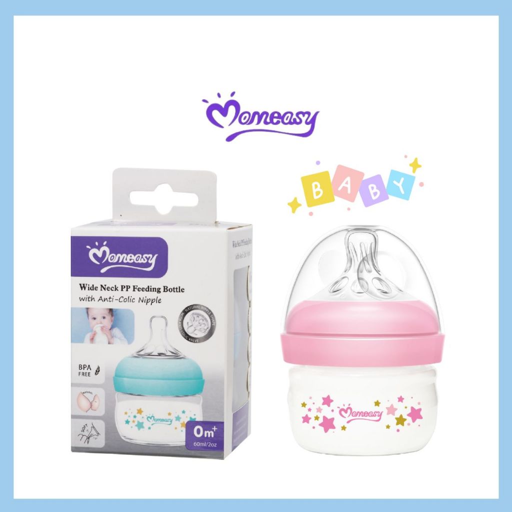 ⚡️พร้อมส่งทุกวัน⚡️ KidzBaby ขวดนมคอกว้าง 2 ออนซ์ Momeasy ป้องกันโคลิค จุกนมขนาดแรกเกิด S ทนความร้อน