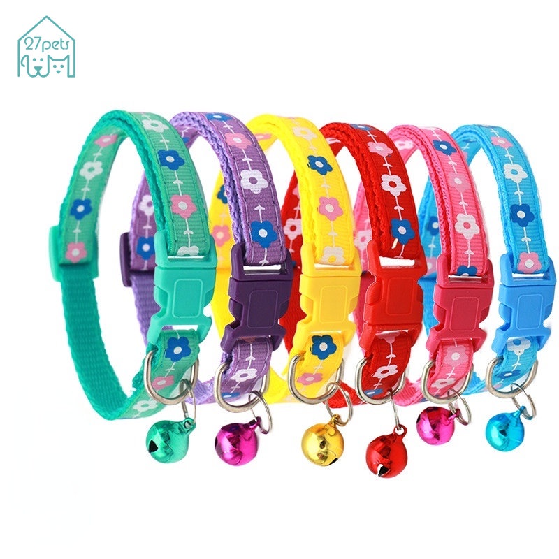 「27Pets」ปลอกคอสัตว์เลี้ยง พิมพ์ลายการ์ตูน พร้อมกระดิ่ง ปรับได้ อุปกรณ์เสริม สําหรับสัตว์เลี้ยง สุนัข แมว