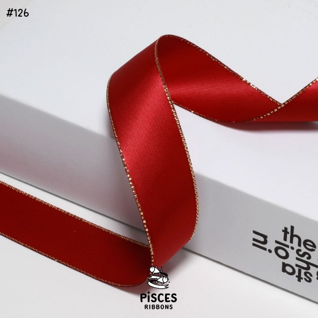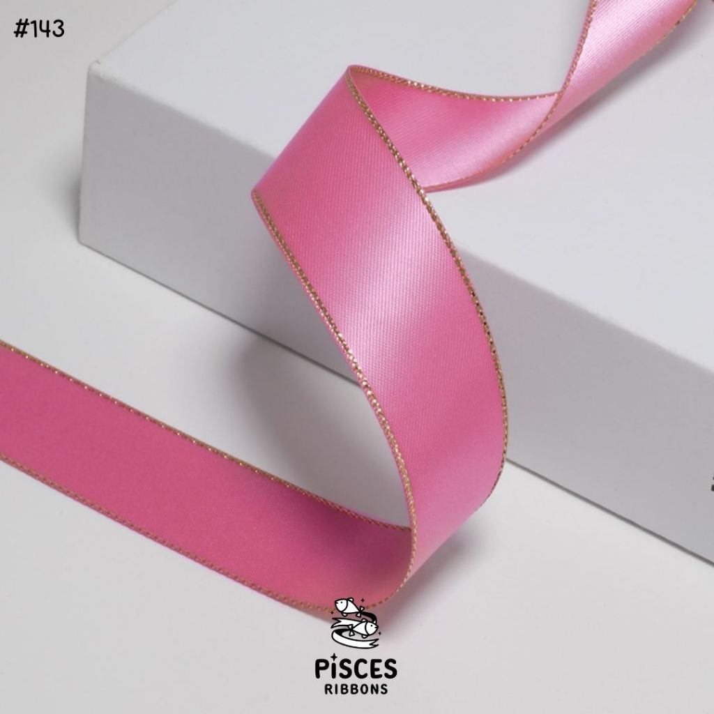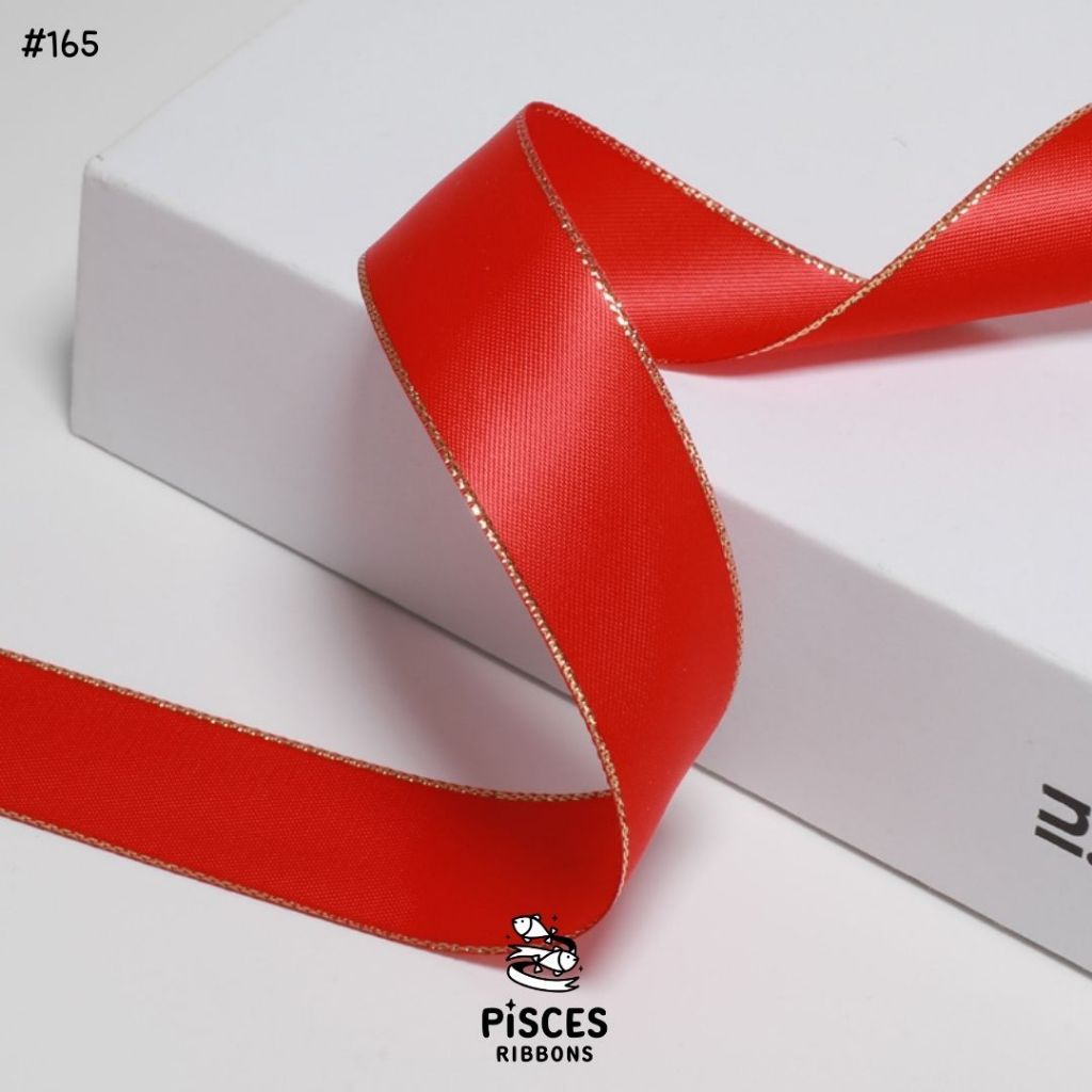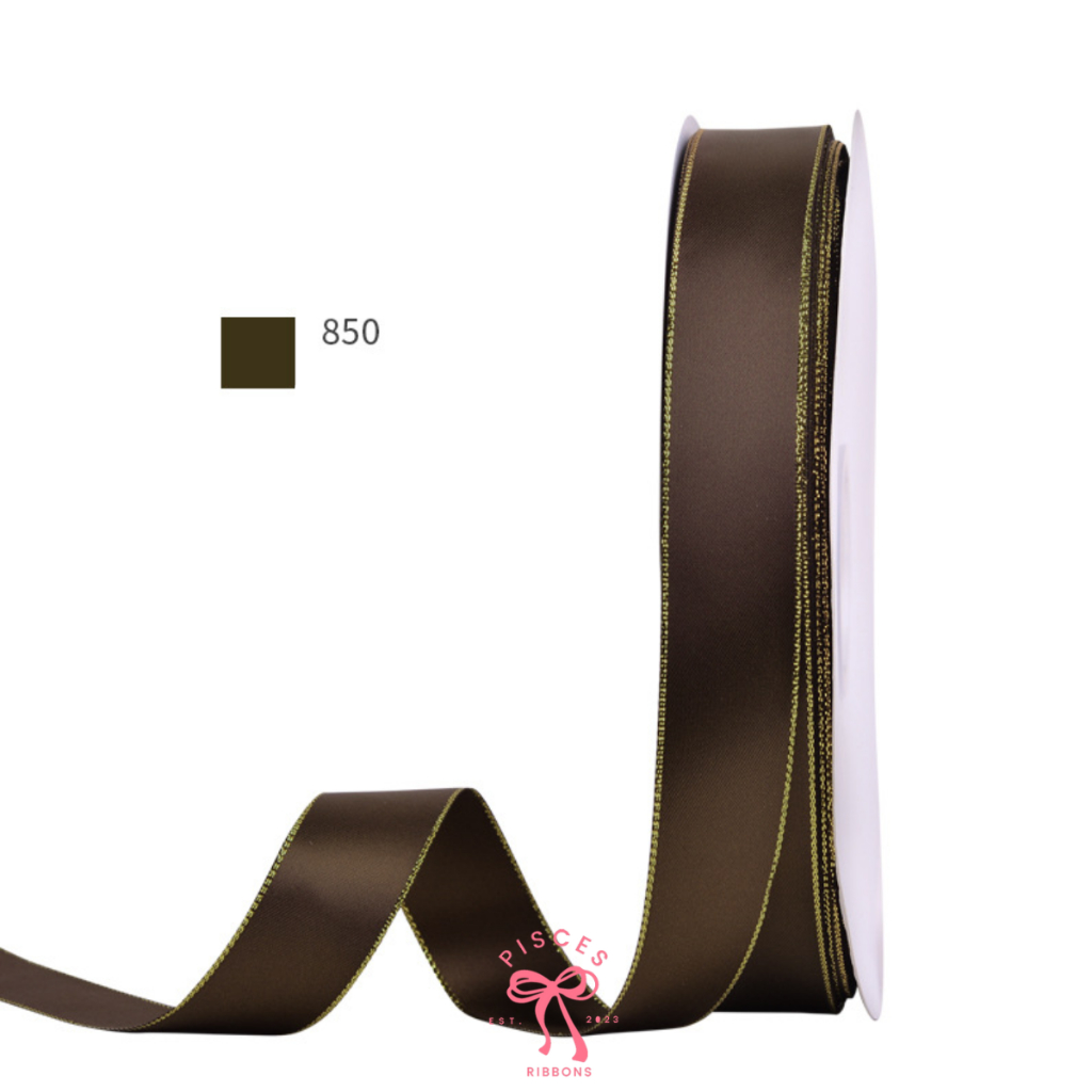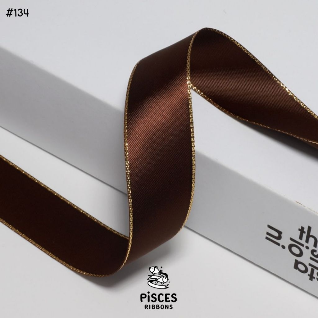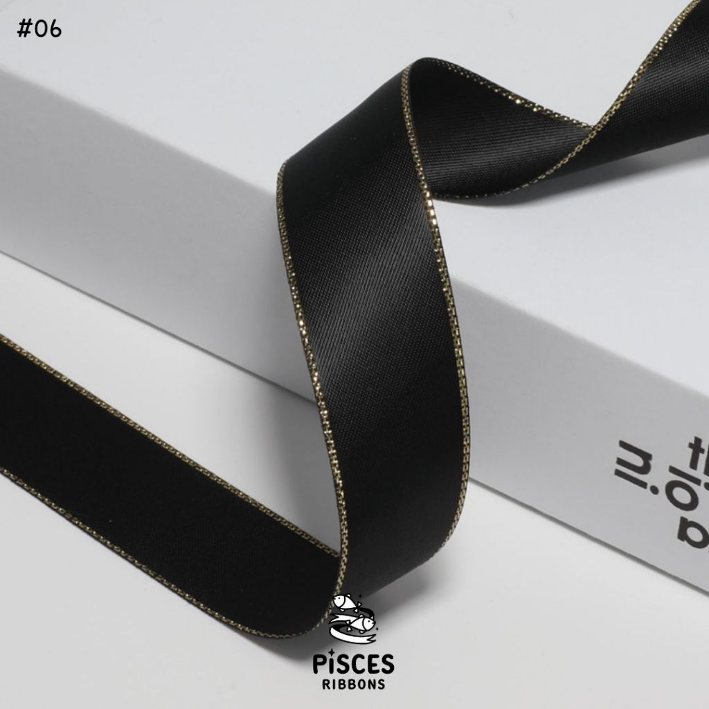 1 ม้วน【50 หลา】* ริบบิ้นซาตินขอบทอง 2.5 ซม. “Golden Edge” – เรียบหรู ดูอบอุ่น สไตล์มินิมอล ผูกของขวัญ ผูกผม[RBR-0064]