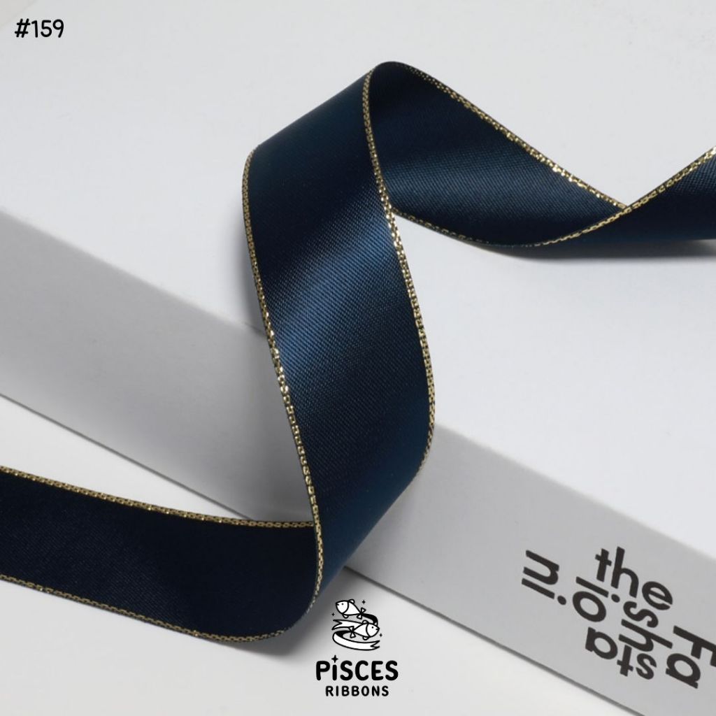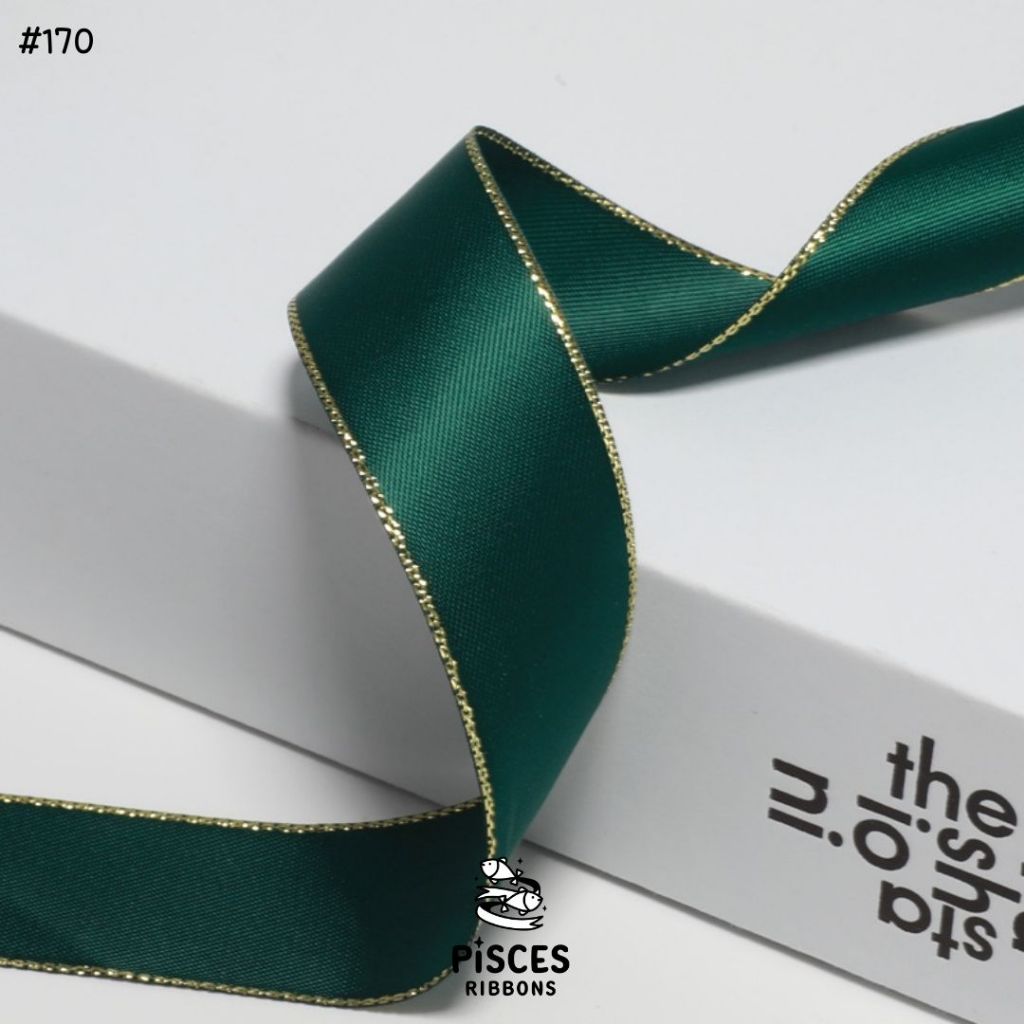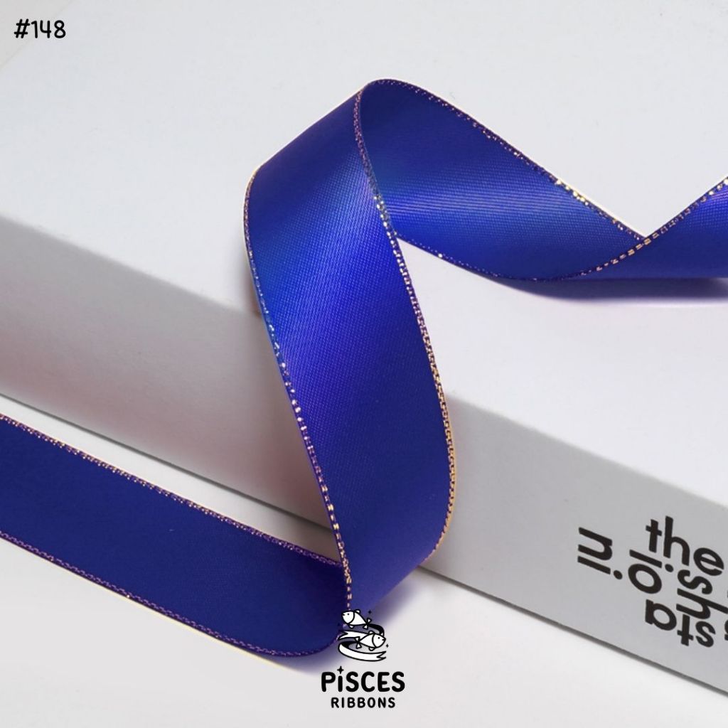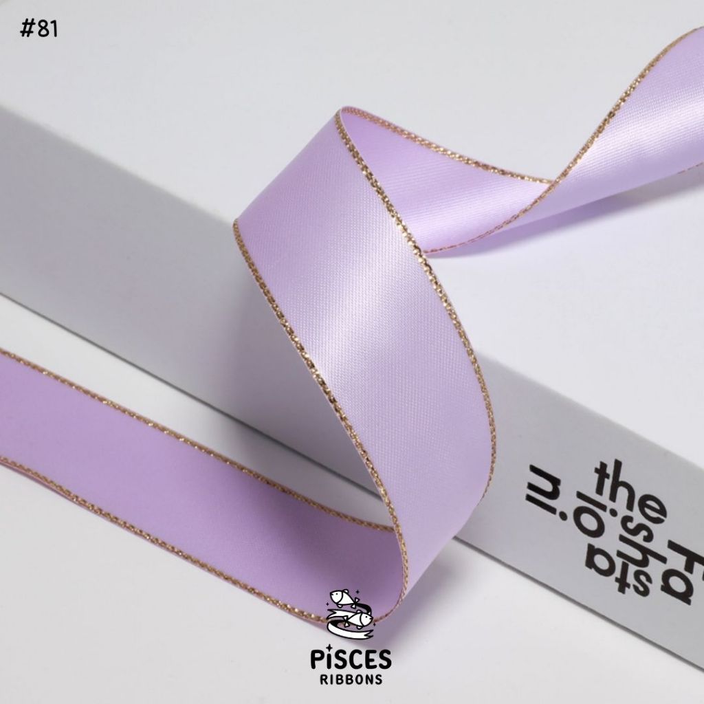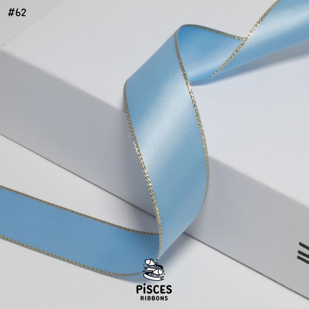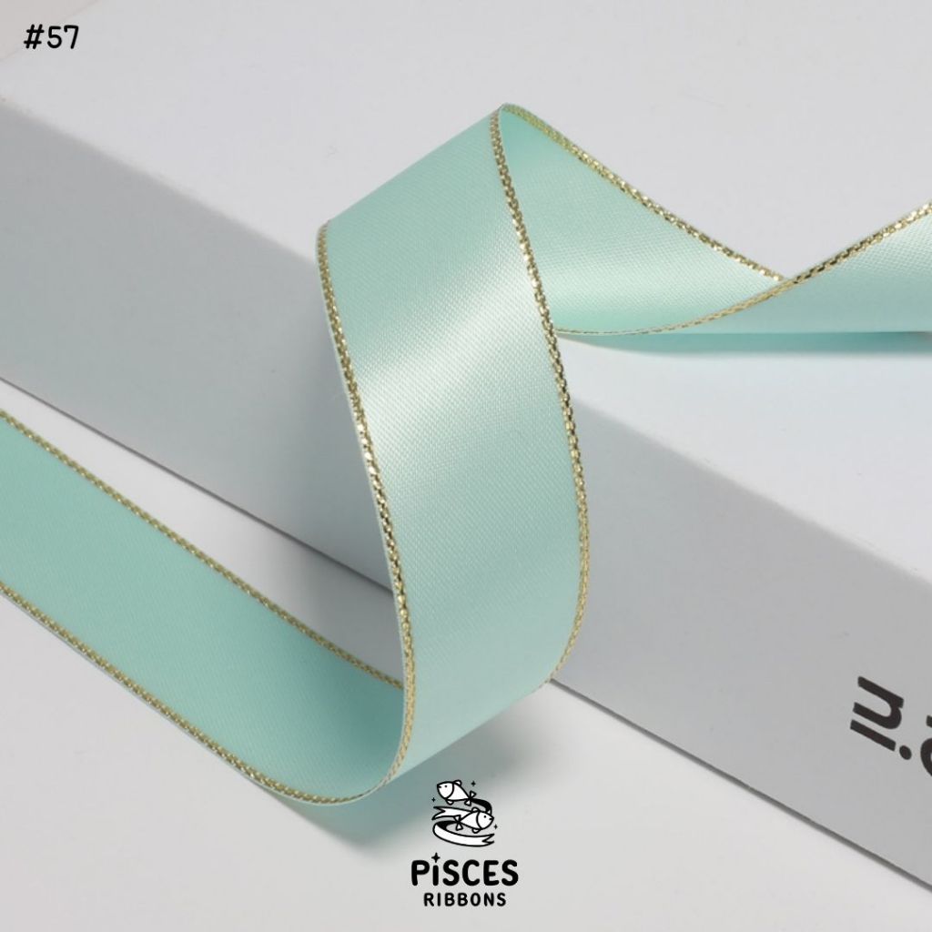 1 ม้วน【50 หลา】* ริบบิ้นซาตินขอบทอง 2.5 ซม. “Golden Edge” – เรียบหรู ดูอบอุ่น สไตล์มินิมอล ผูกของขวัญ ผูกผม[RBR-0064]