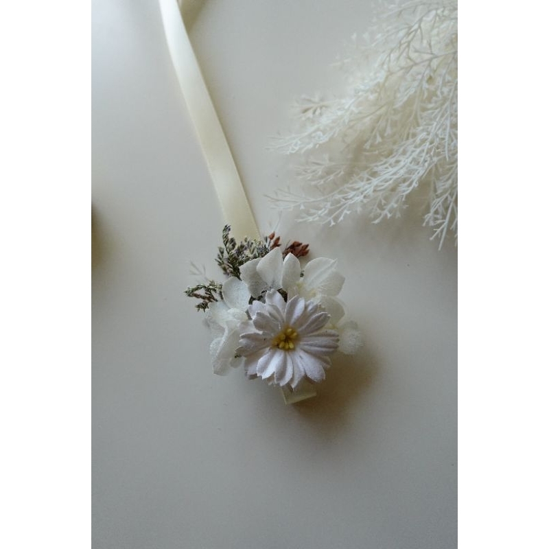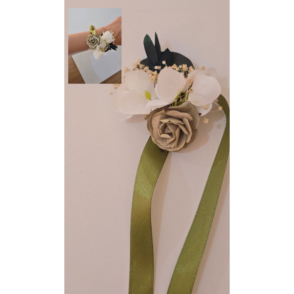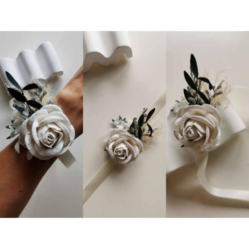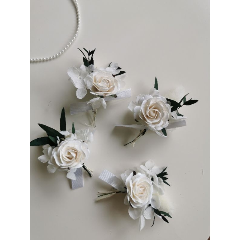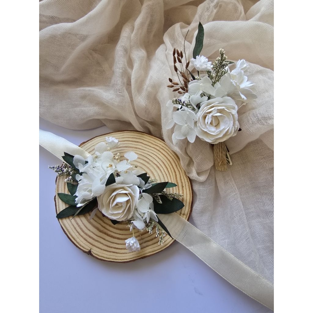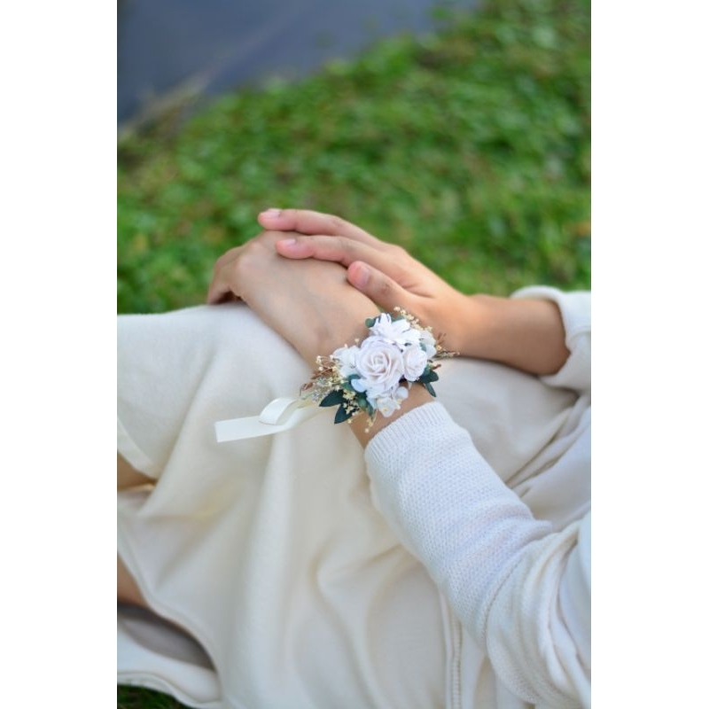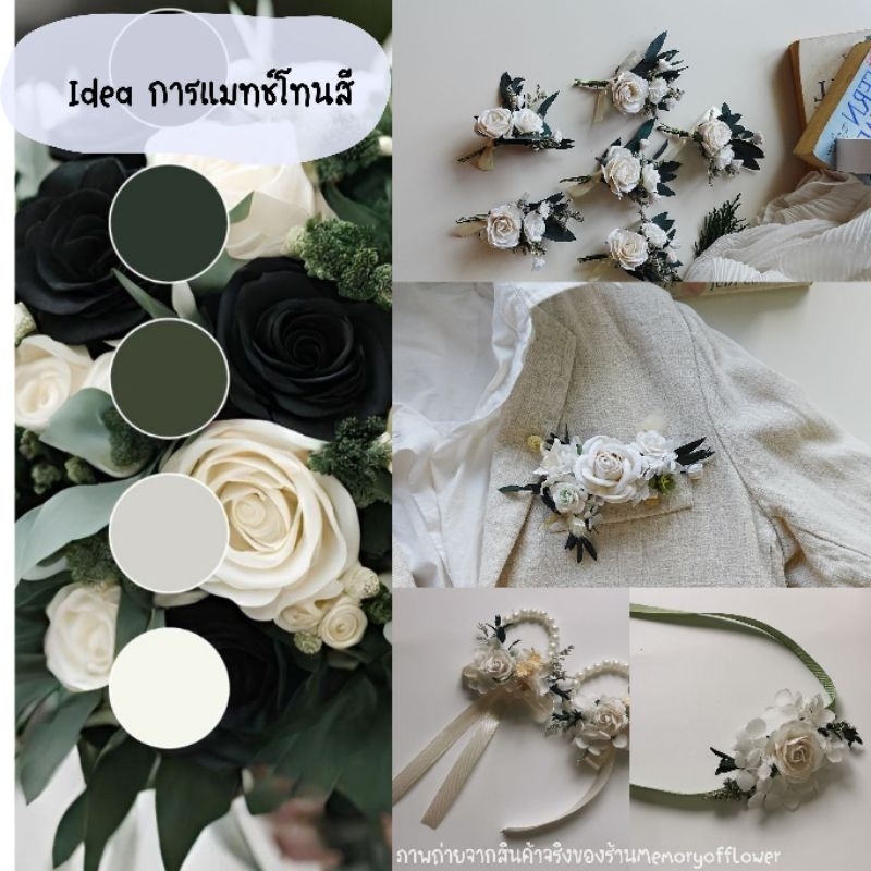 Memoryoflower•ข้อมือเพื่อนเจ้าสาว เข็มกลัด•โทนขาว เขียว เขียวเข้ม