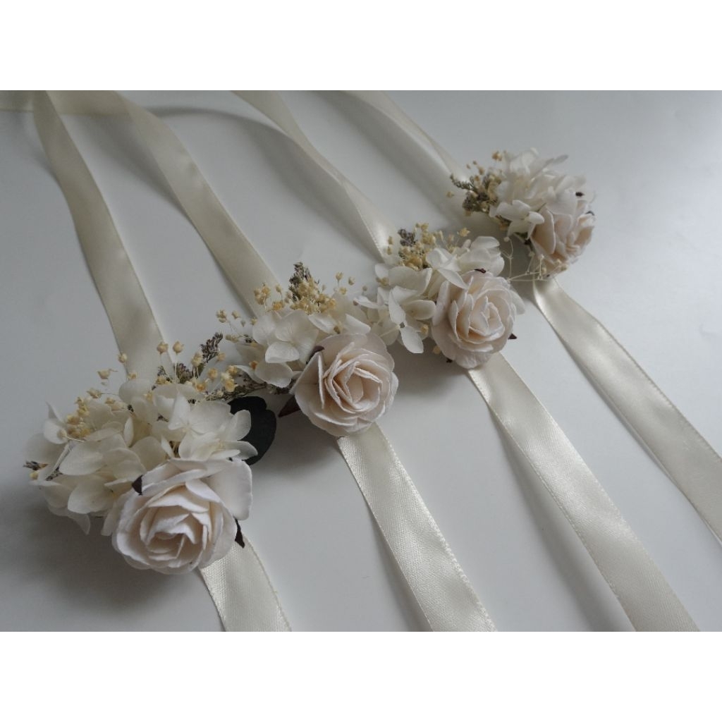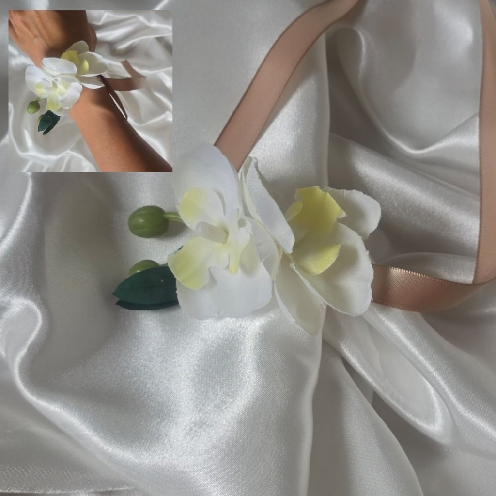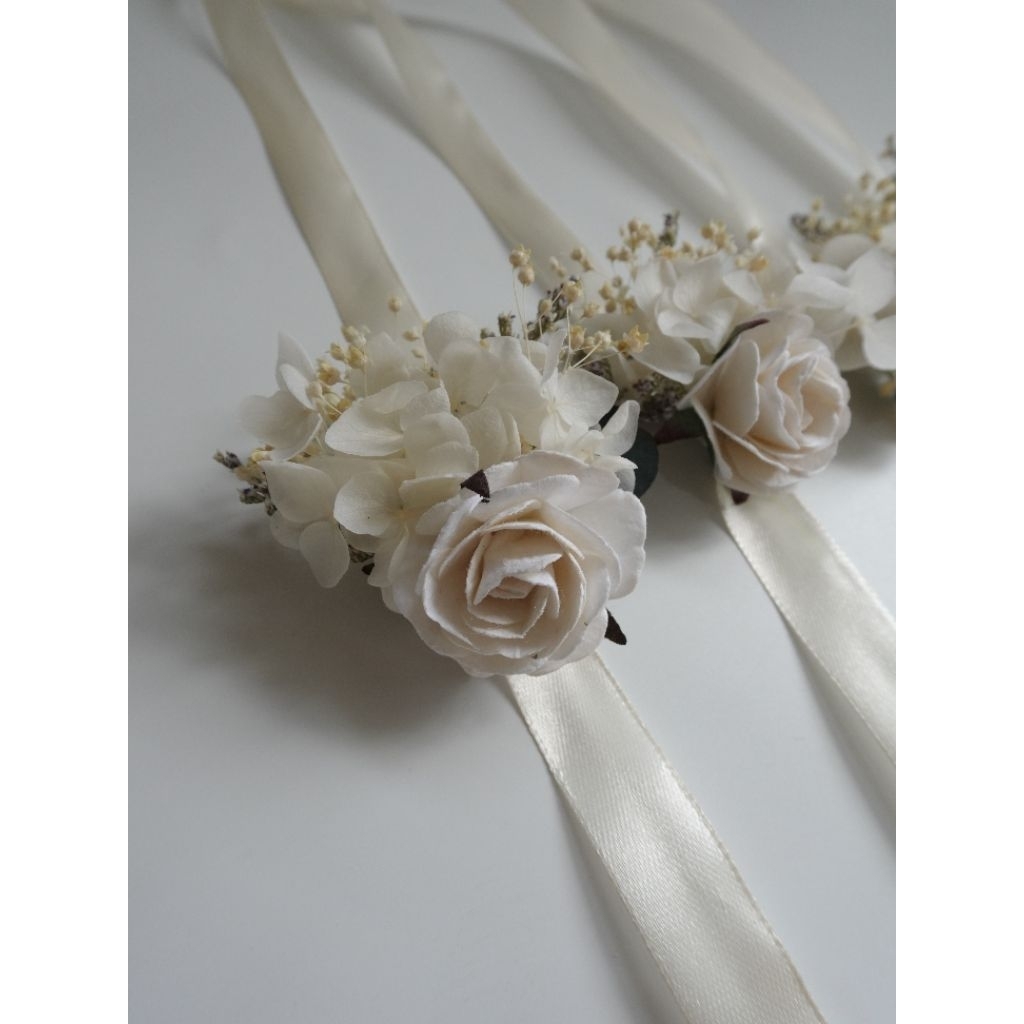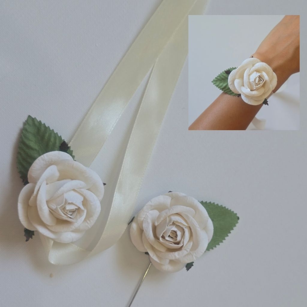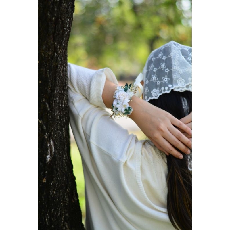 Memoryoflower•ข้อมือเพื่อนเจ้าสาว เข็มกลัด•โทนขาว เขียว เขียวเข้ม